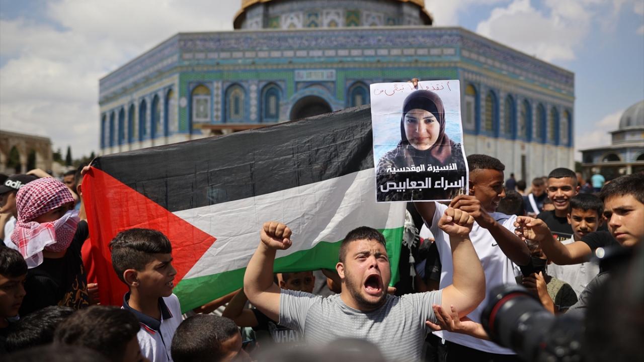 Mescid-i Aksa’da Filistinli tutuklulara destek gösterisi