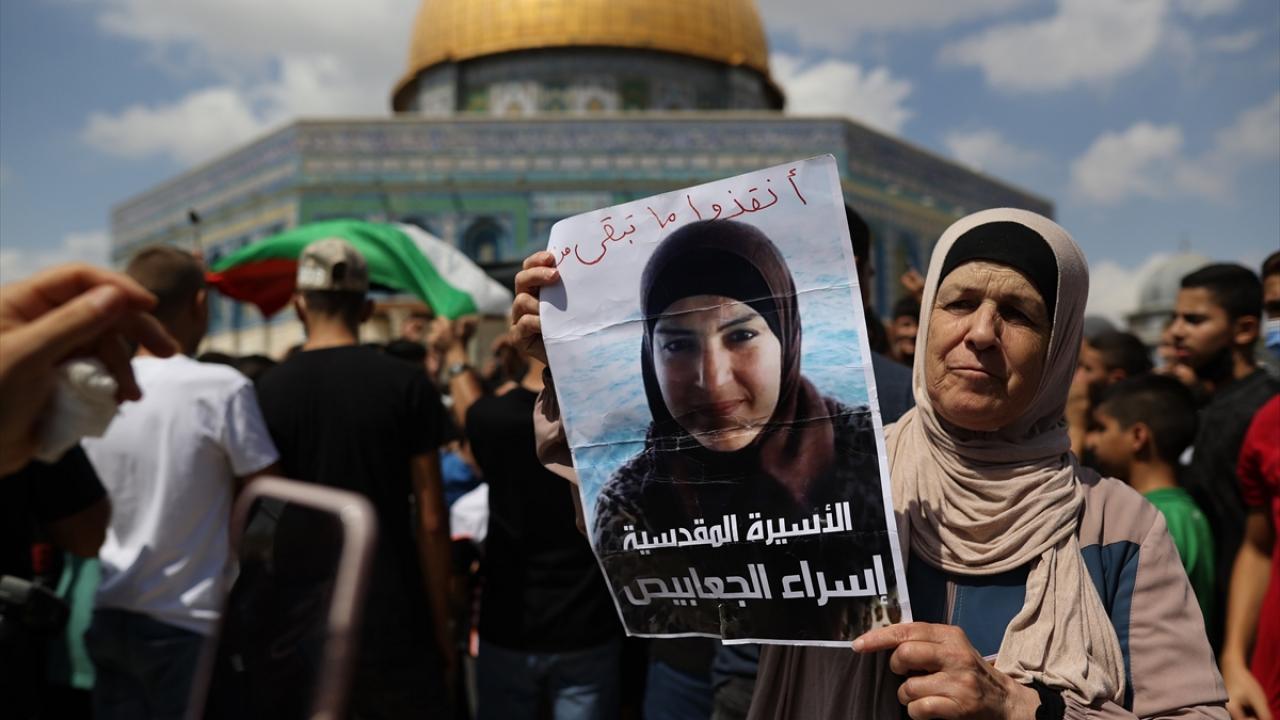 İşgal altındaki Doğu Kudüs’te bulunan Mescid-i Aksa'da toplanan onlarca Filistinli, İsrail’in cezaevlerindeki tutuklulara yaptığı baskıyı protesto etmek ve tutuklulara destek vermek amacıyla gösteri düzenledi