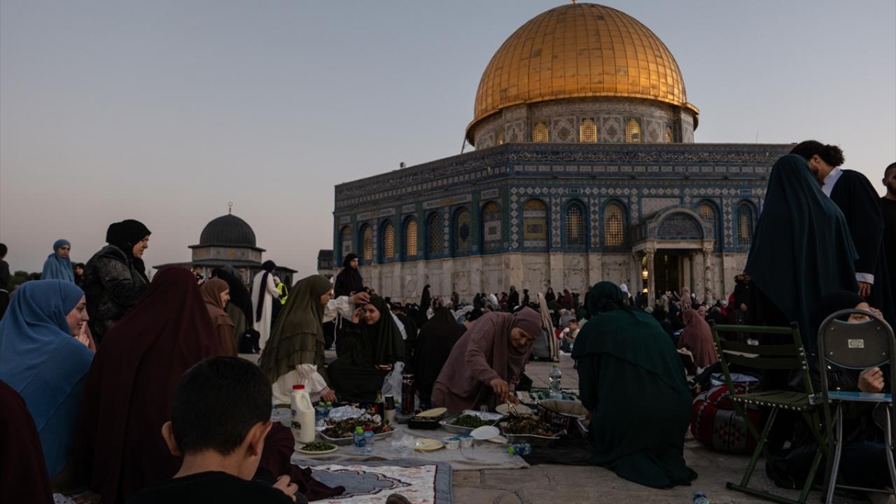 Filistinliler, işgal altındaki Doğu Kudüs'te bulunan Mescid'i Aksa'ya akın ederek iftarlarını Aksa'nın avlusunda açtı.