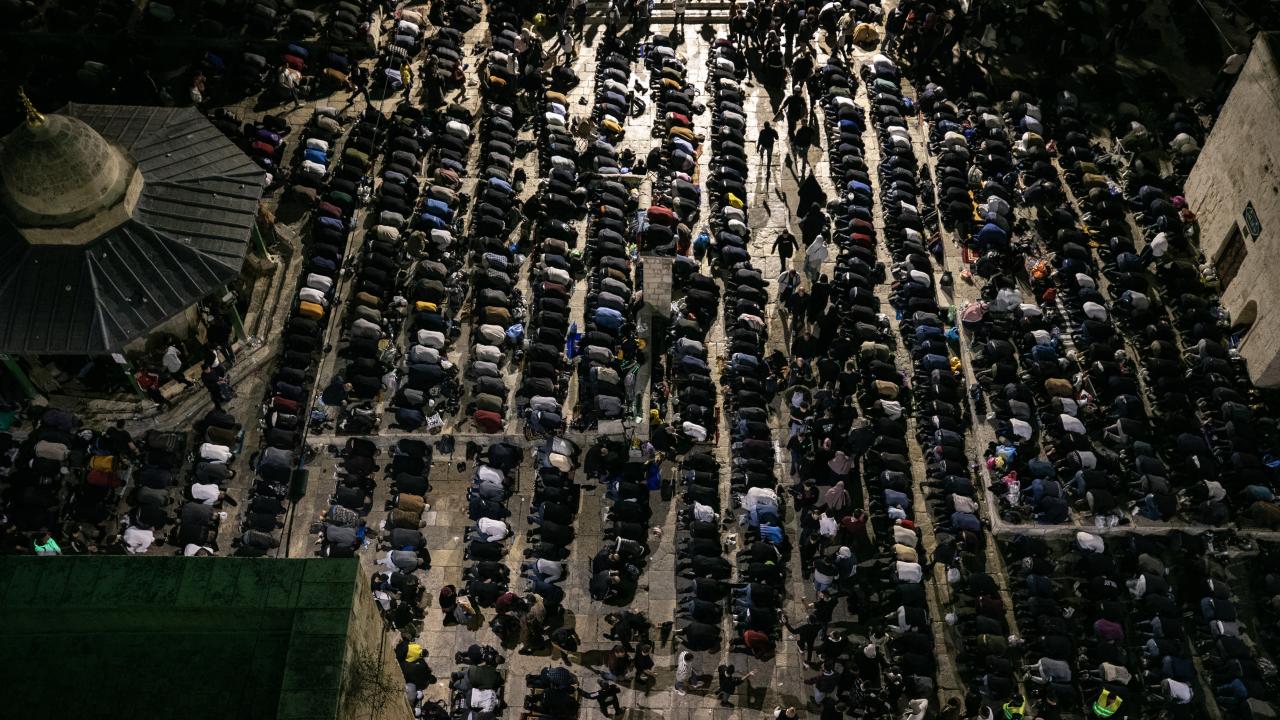 Binlerce Müslüman teravih namazını kılmak için Mescid-i Aksa ve avlusunu doldurdu.
