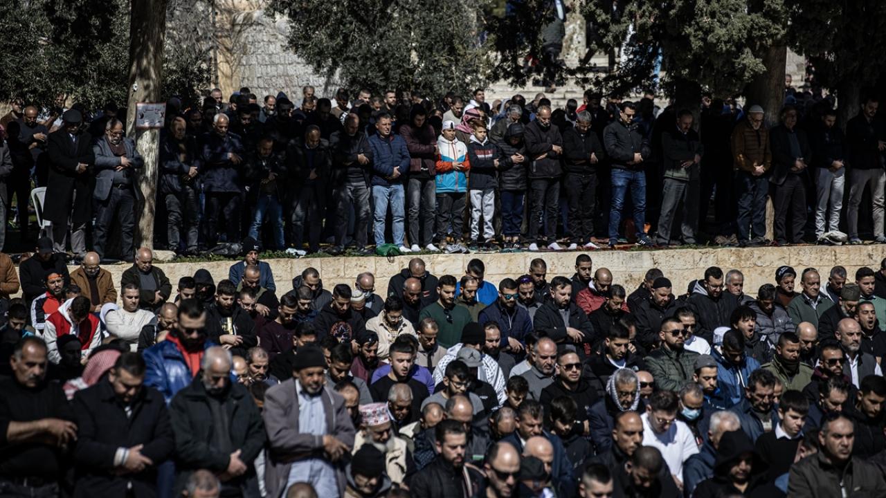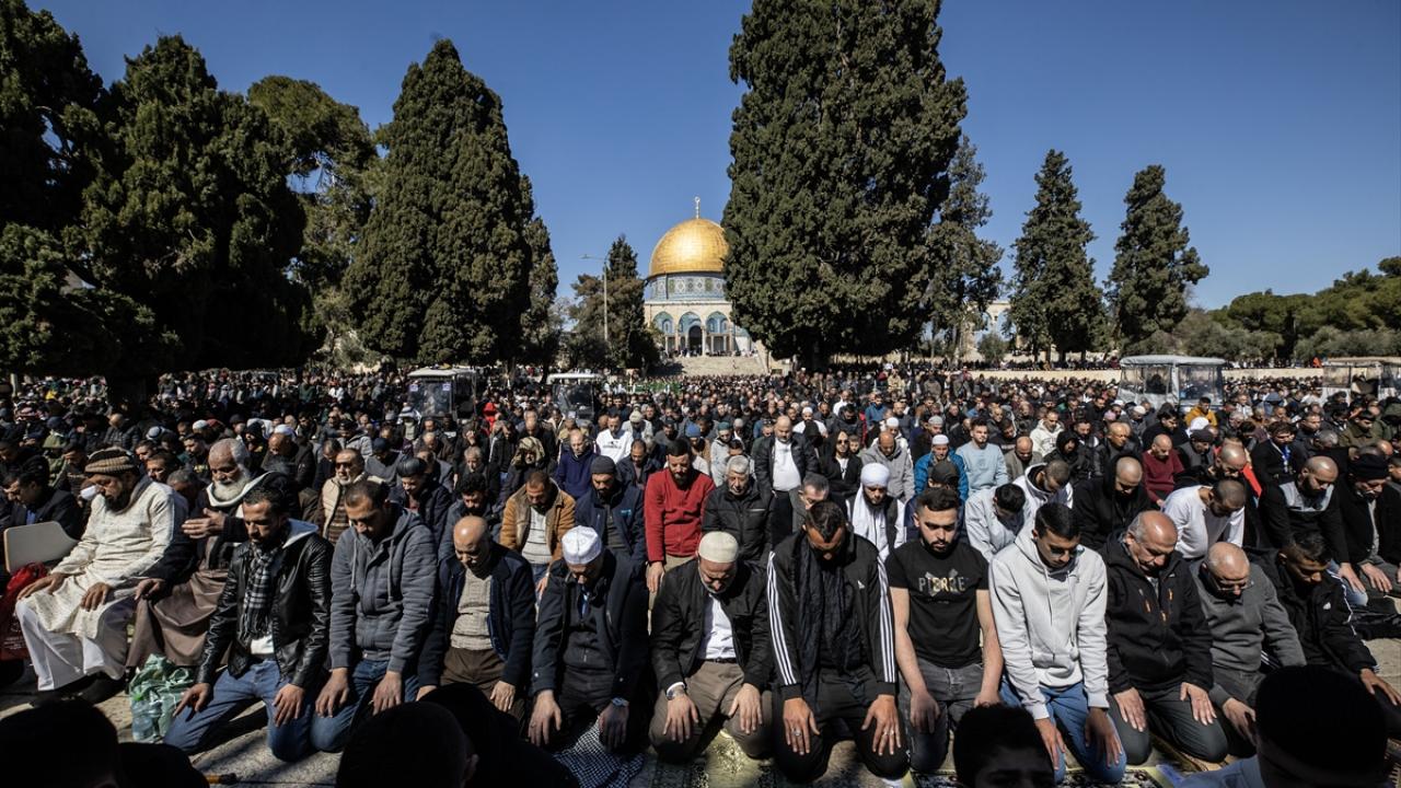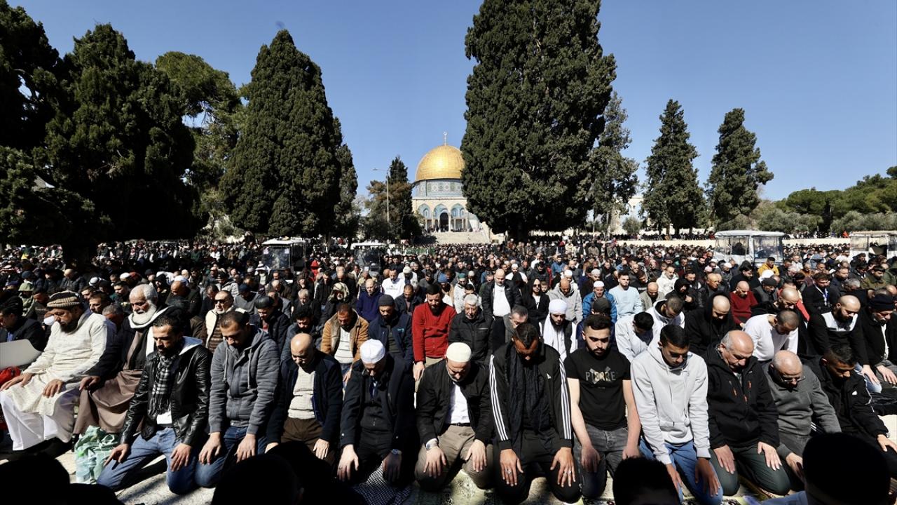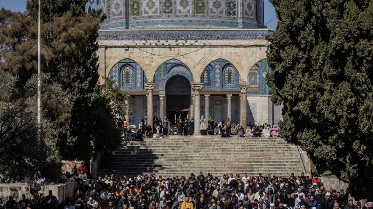 Filistinlilerin yanı sıra Türkiye ve diğer ülkelerden çok sayıda Müslüman ziyaretçinin yoğun katılım gösterdiği cuma namazında Kıble Mescidi ve Kubbetü’s-Sahra’nın yanı sıra Harem-i Şerif’in avlusu da ibadet edenlerle doldu.