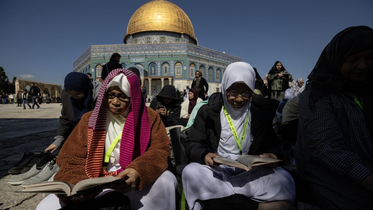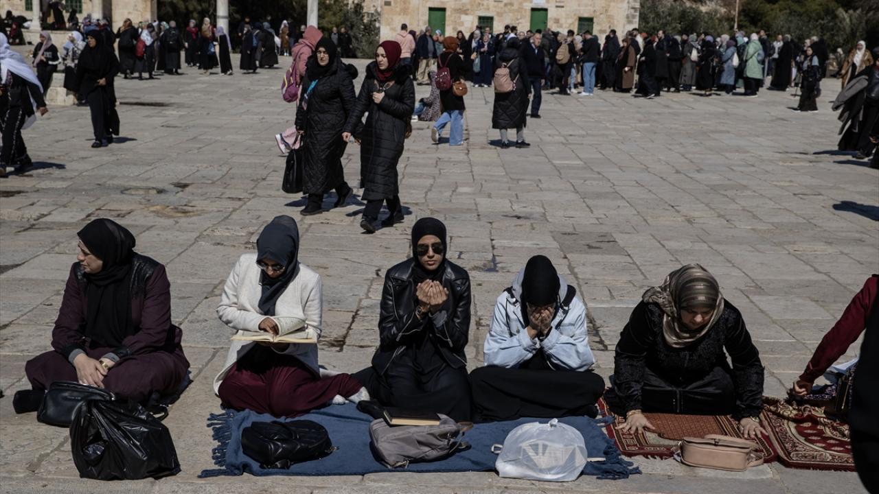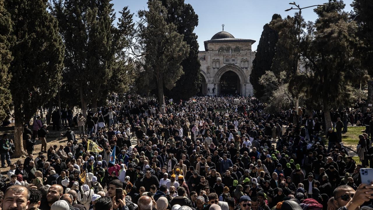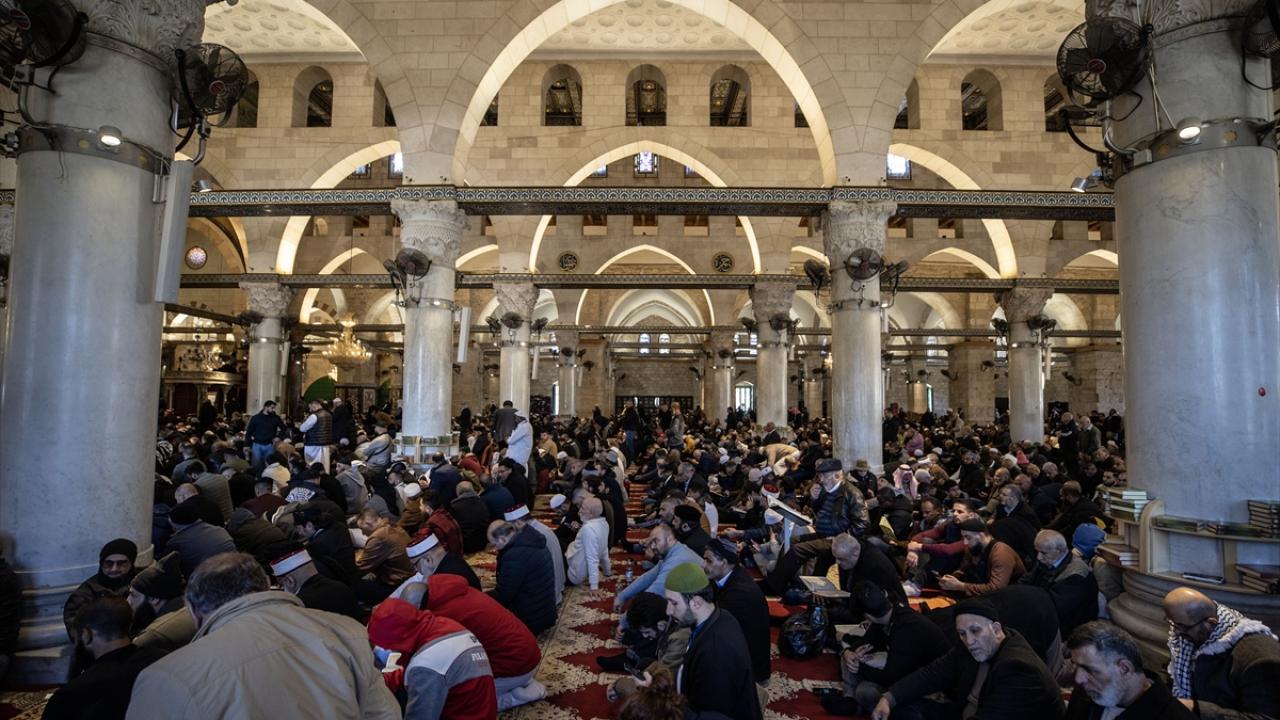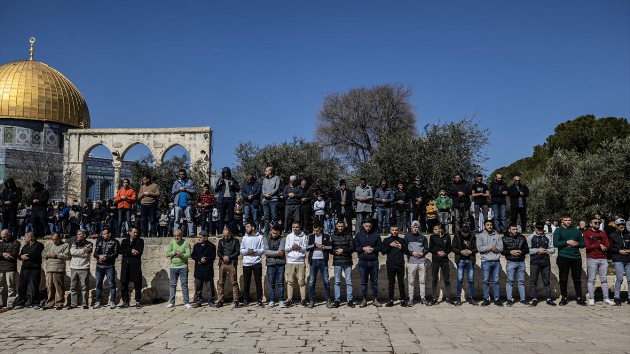 Filistinlilerin yanı sıra Türkiye ve diğer ülkelerden çok sayıda Müslüman ziyaretçinin yoğun katılım gösterdiği cuma namazında Kıble Mescidi ve Kubbetü’s-Sahra’nın yanı sıra Harem-i Şerif’in avlusu da ibadet edenlerle doldu.