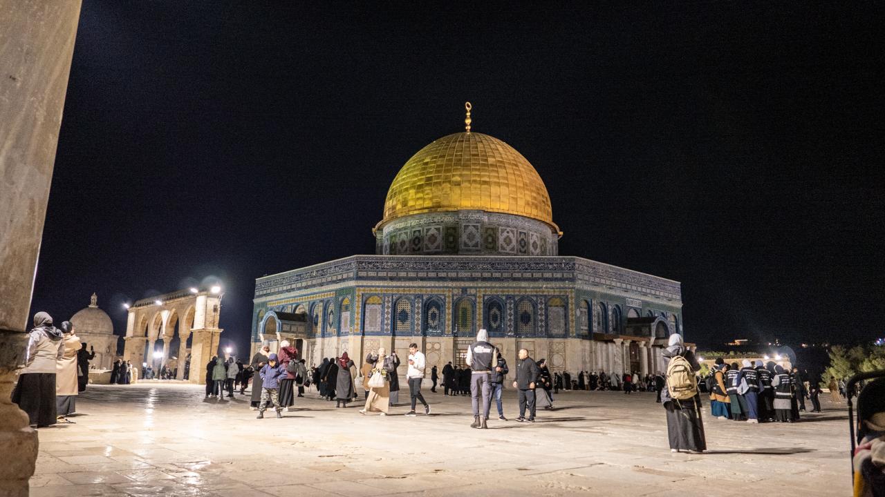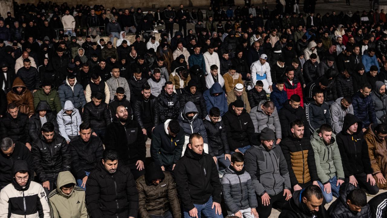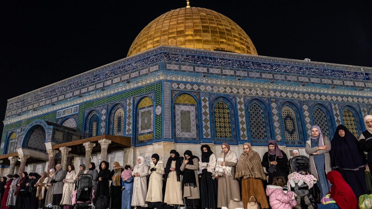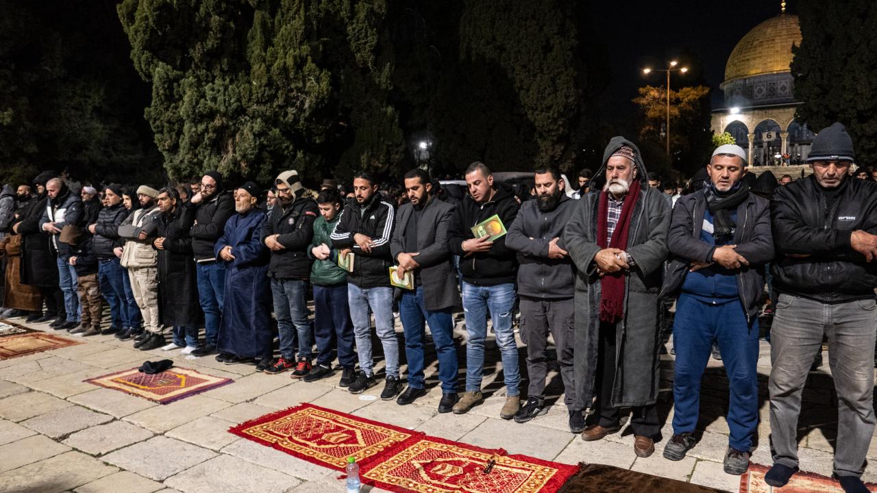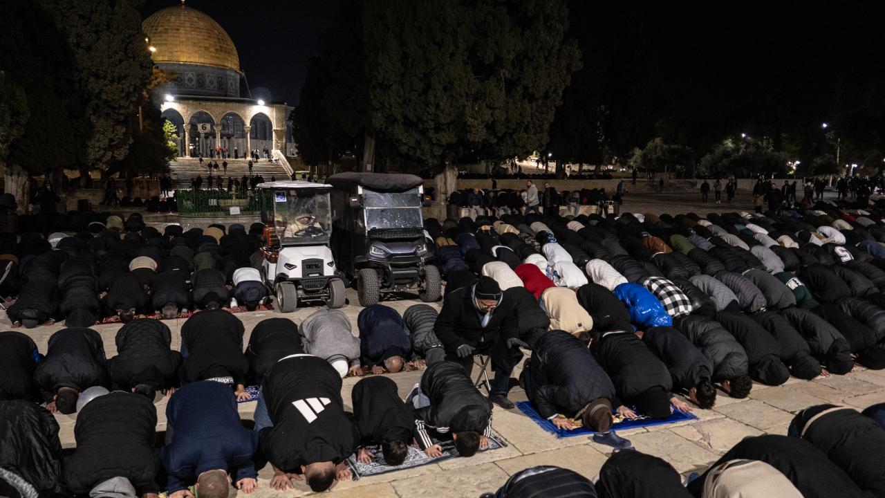 Akşam namazı sıralarında hilalin görüldüğünün ve yarın ramazanın ilk günü olduğunun duyurulmasının ardından on binlerce Müslüman, ilk kıble Mescid-i Aksa`ya akın etti.