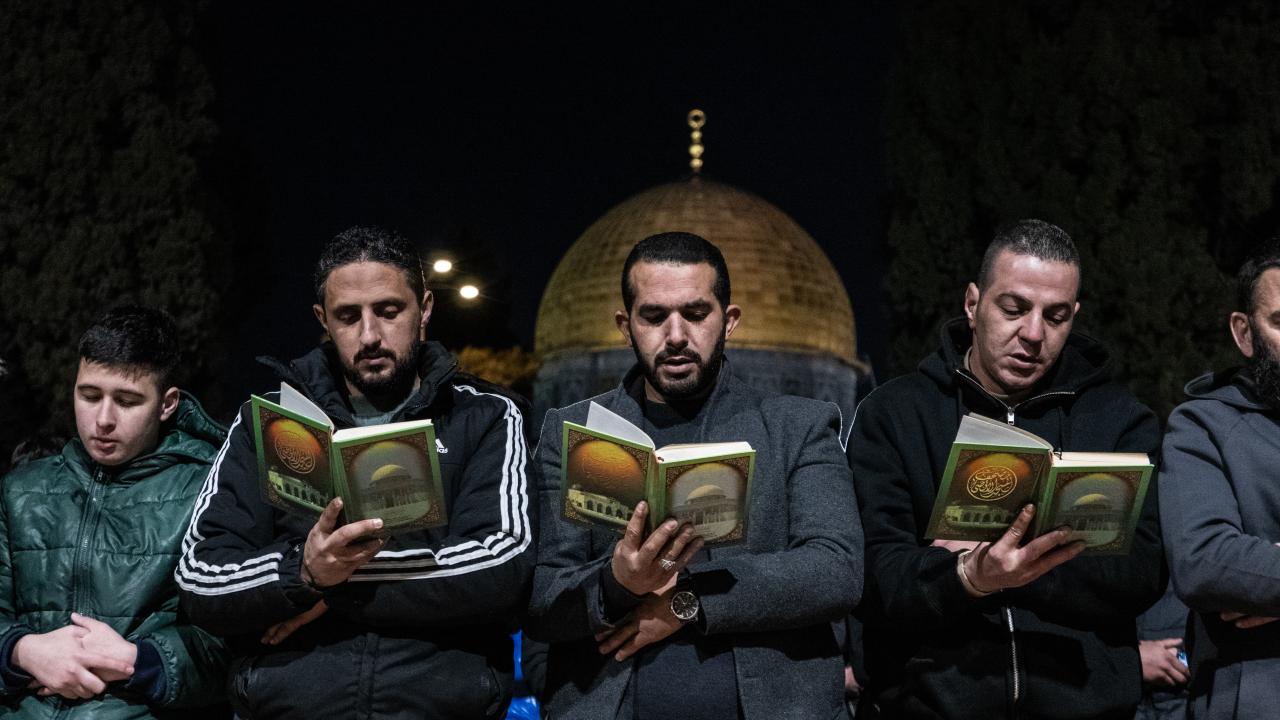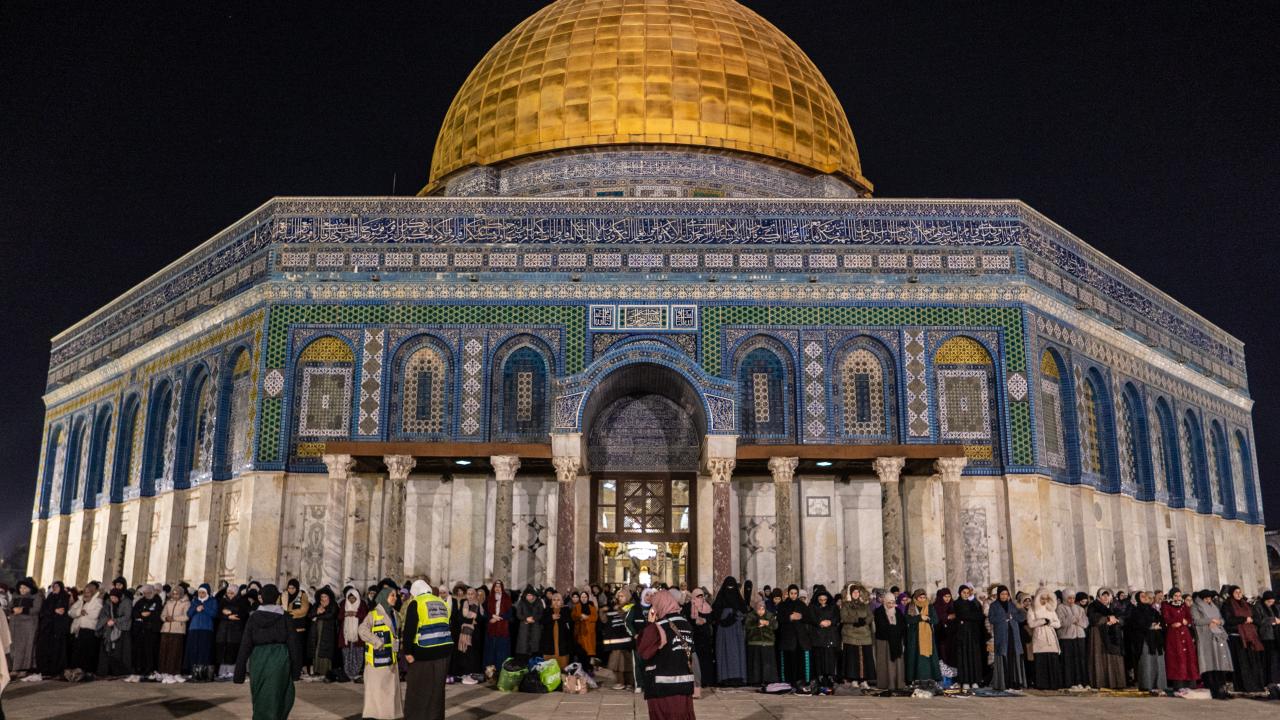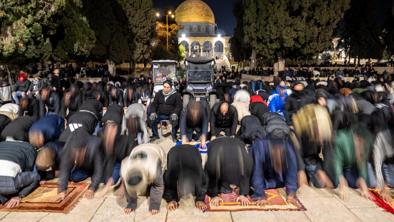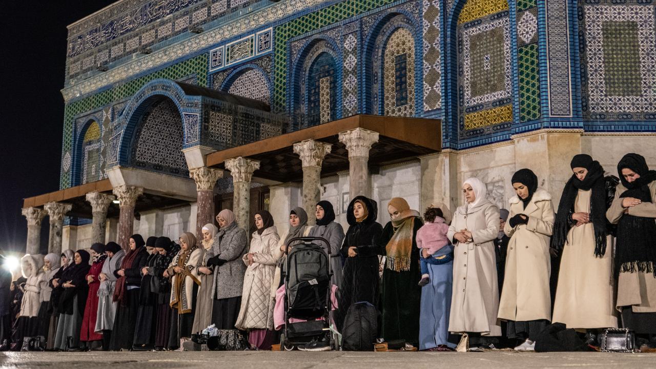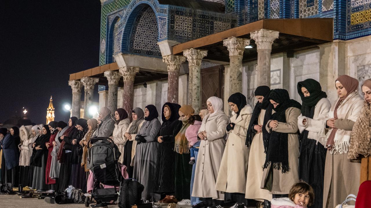 Akşam namazı sıralarında hilalin görüldüğünün ve yarın ramazanın ilk günü olduğunun duyurulmasının ardından on binlerce Müslüman, ilk kıble Mescid-i Aksa`ya akın etti.