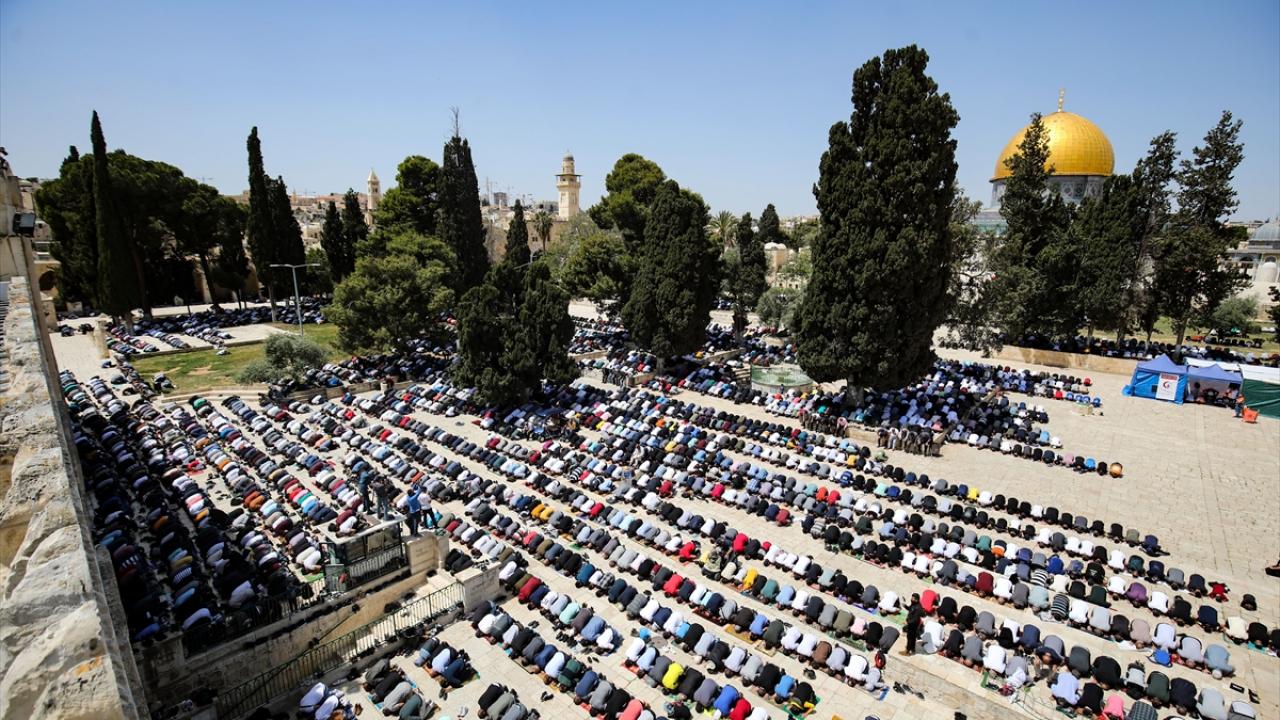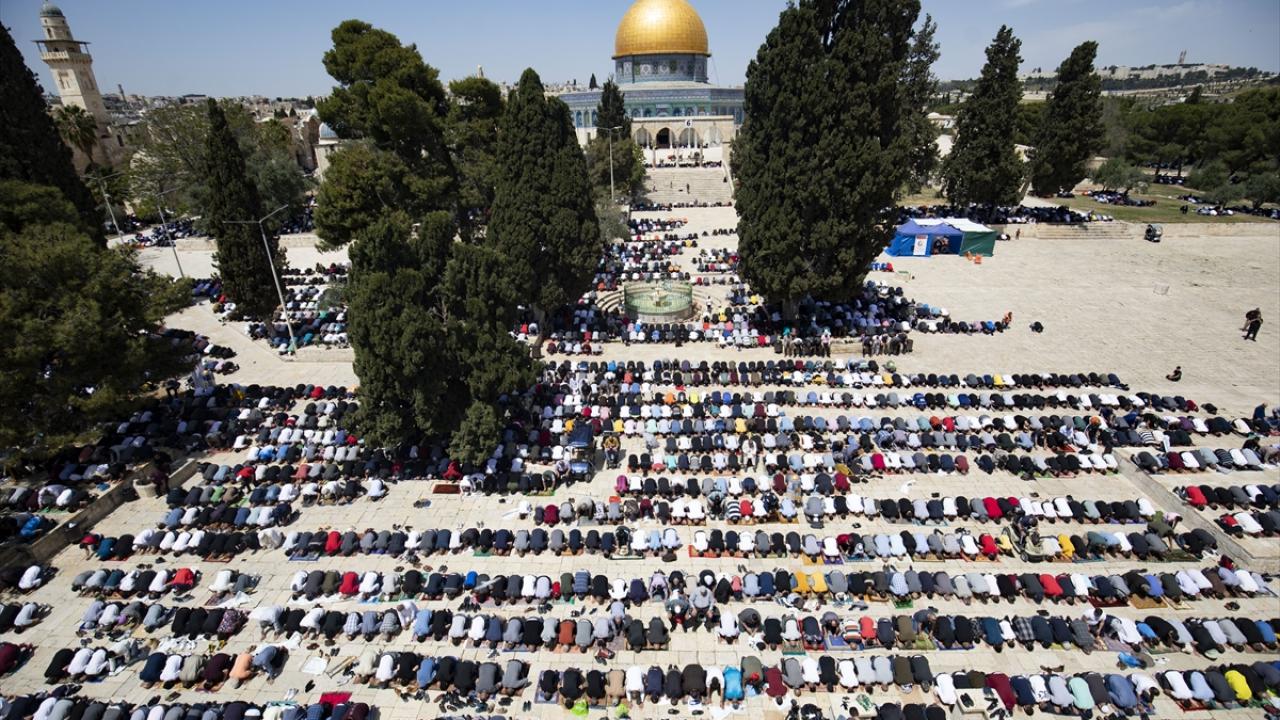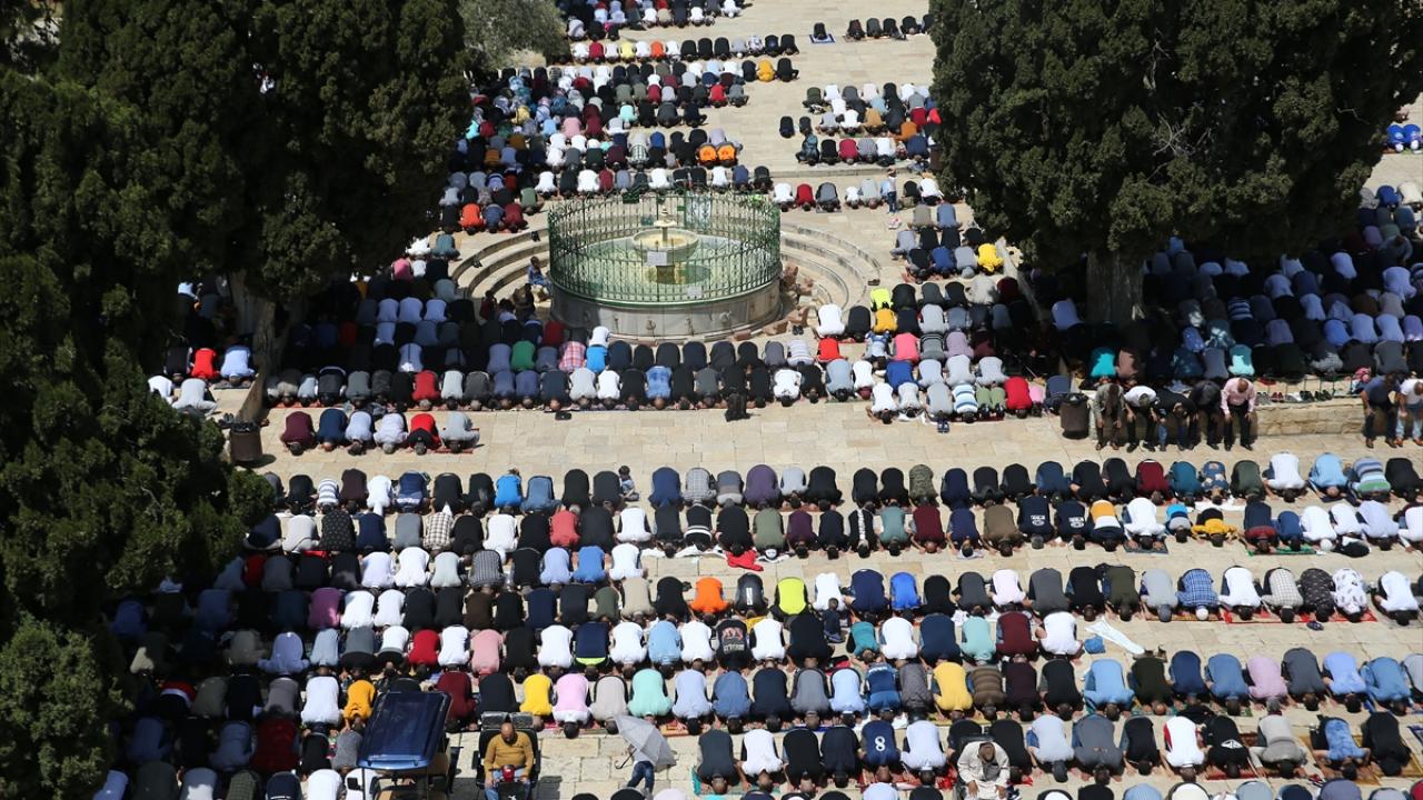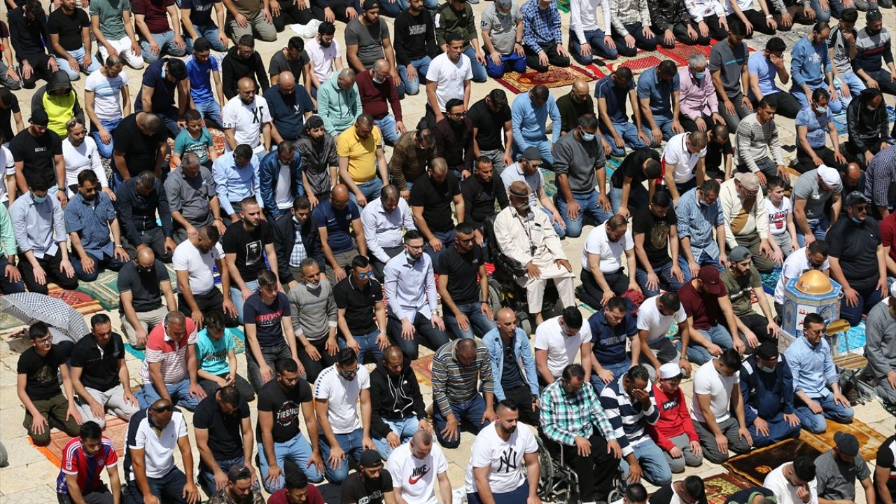 Kudüs İslami Vakıflar İdaresinden yapılan yazılı açıklamaya göre, yaklaşık 70 bin Filistinli cuma namazını Mescid-i Aksa`da kıldı.