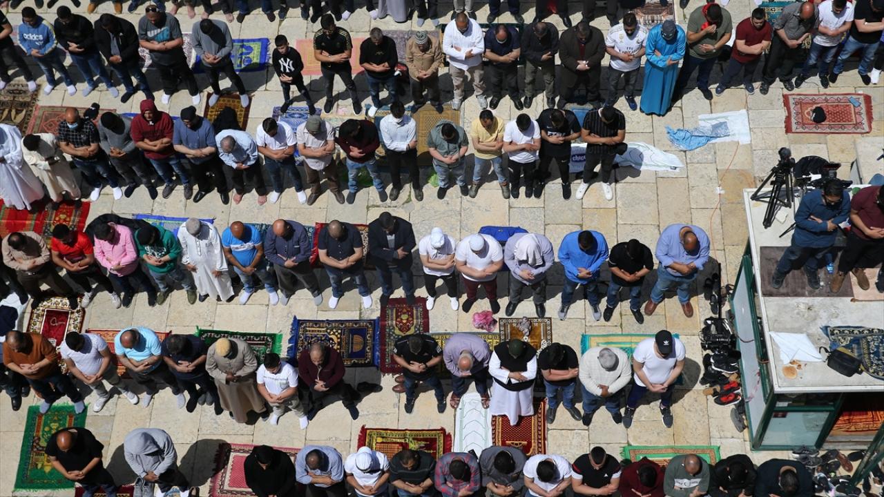 Bu sırada Mescid-i Aksa`nın kapılarında ve Eski Şehir olarak bilinen Kudüs`ün sur içi bölgesinde yüzlerce İsrail polisi hazır bekledi.