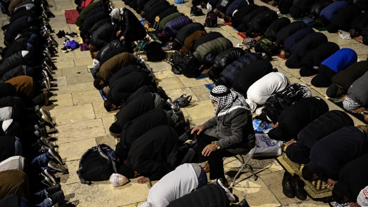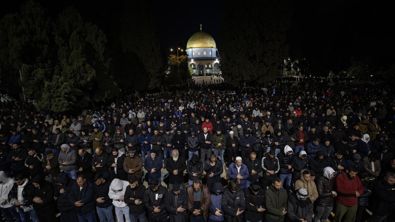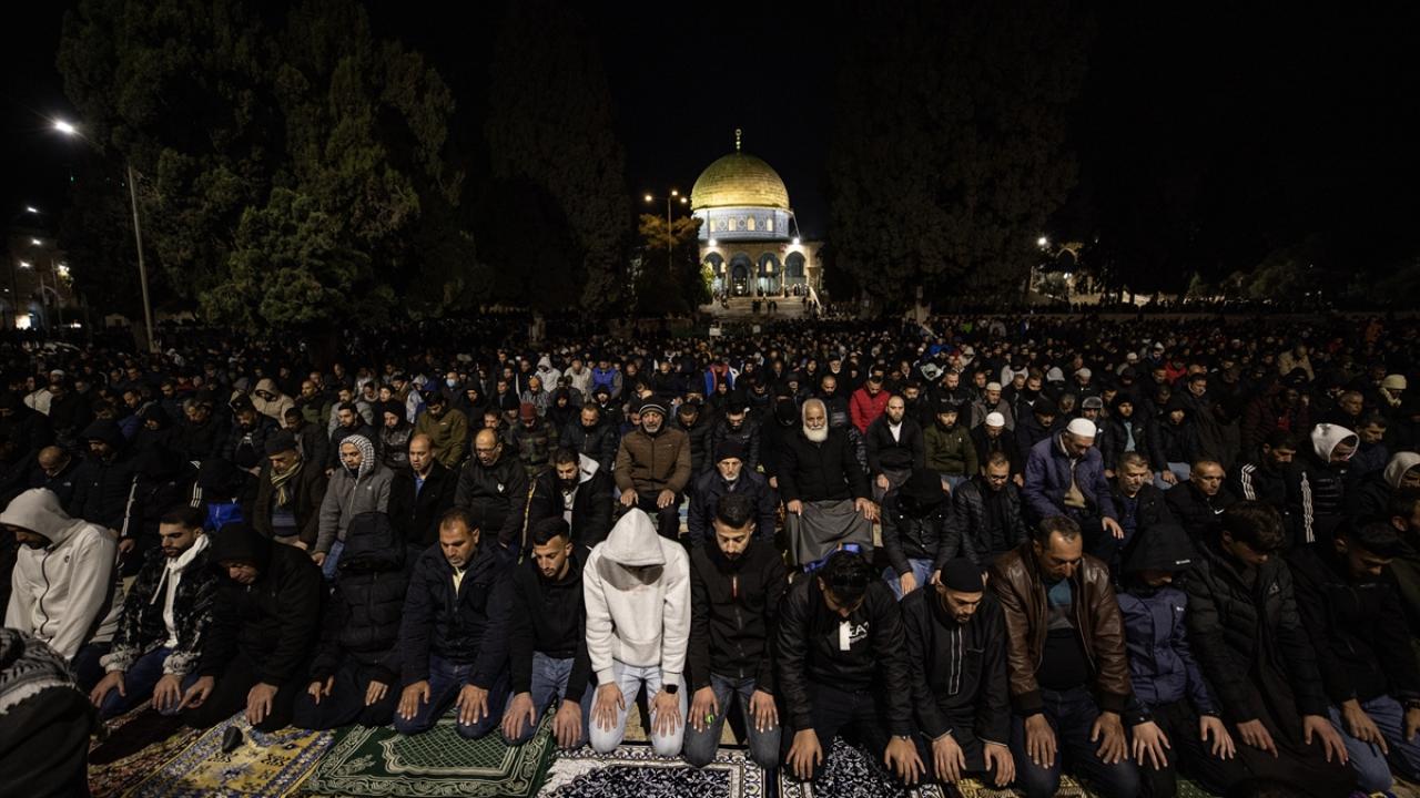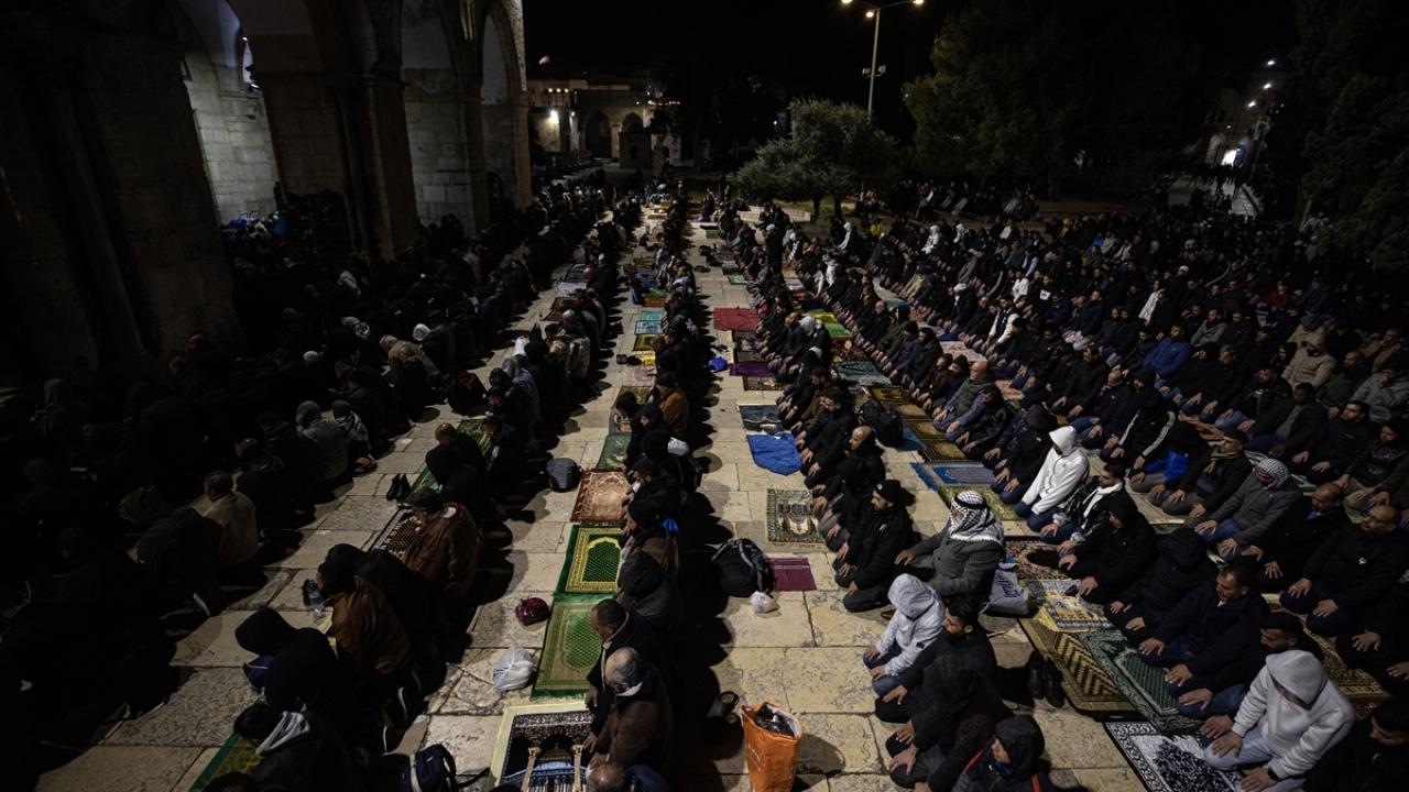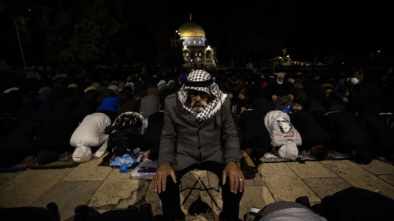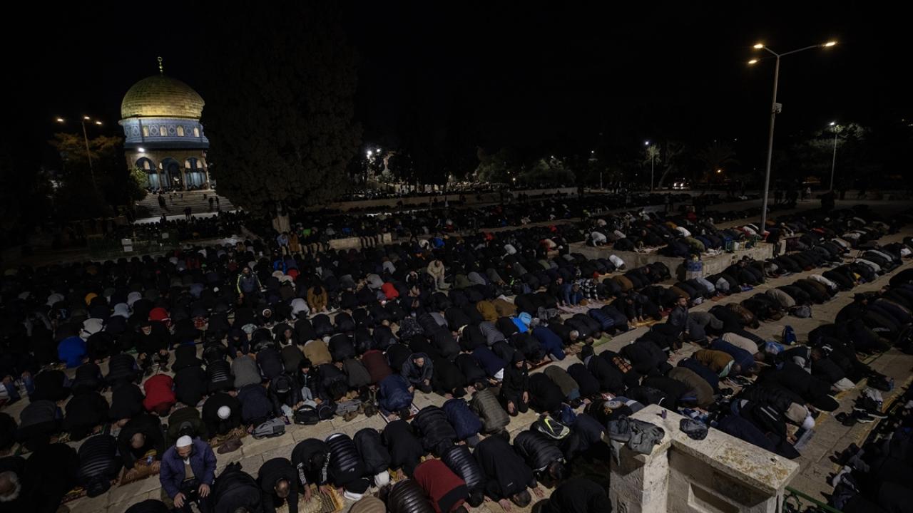 On binlerce Filistinli, teravih namazını işgal altındaki Doğu Kudüs'te bulunan Mescid'i Aksa'nın avlusunda kıldı.
