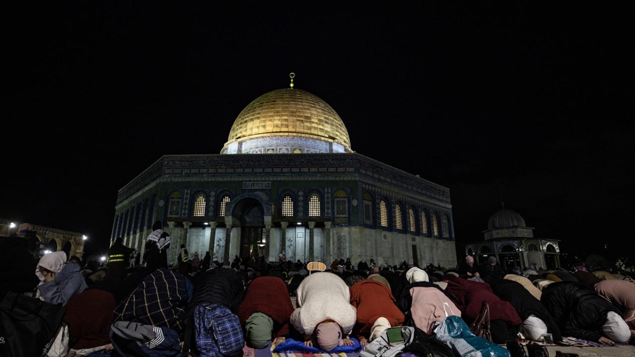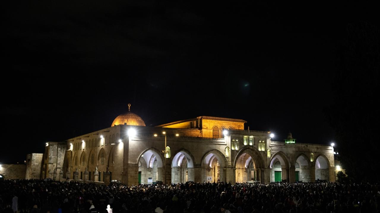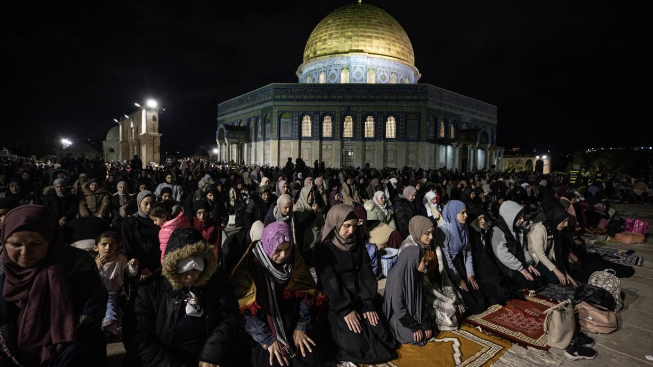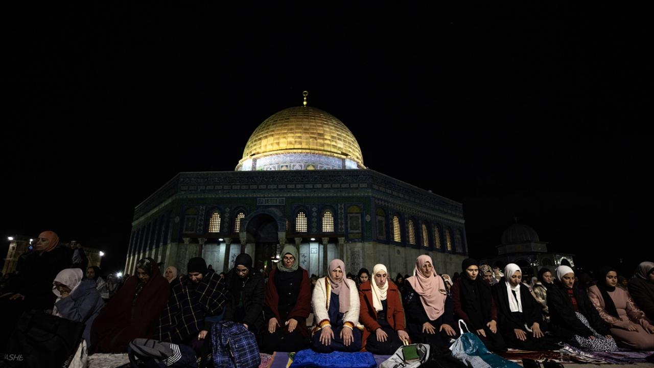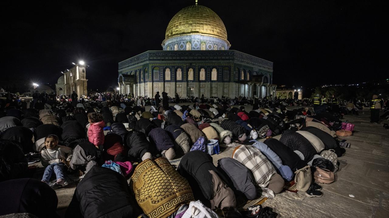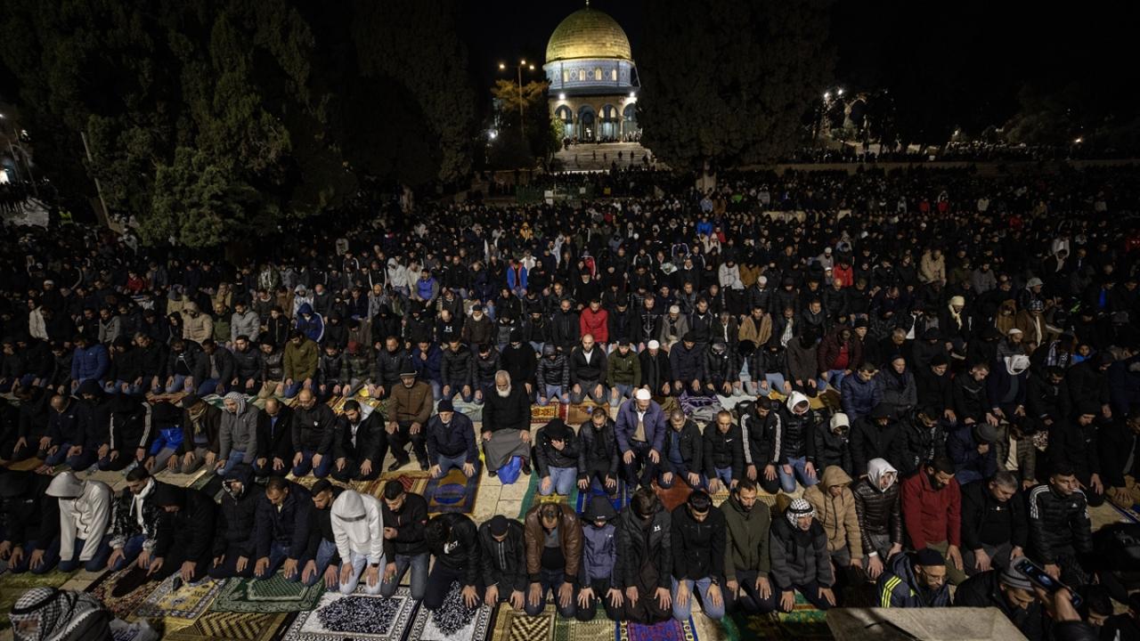 On binlerce Filistinli, teravih namazını işgal altındaki Doğu Kudüs'te bulunan Mescid'i Aksa'nın avlusunda kıldı.