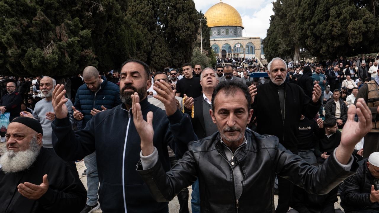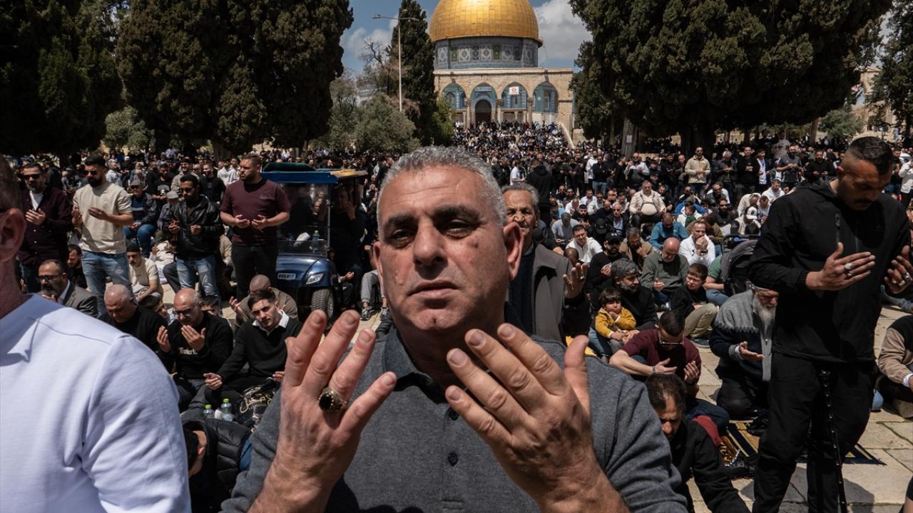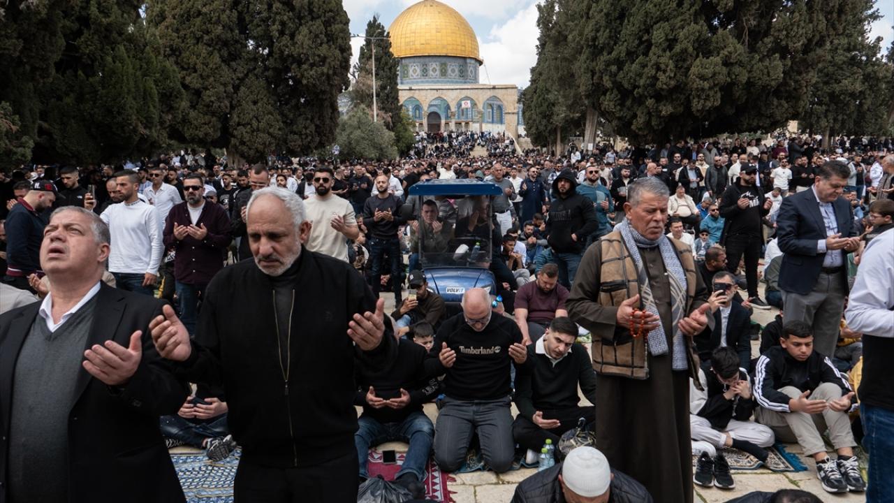 On binlerce Filistinli, İsrail polisinin getirdiği kısıtlamalara rağmen İran`la savaştan bu yana ibadete kapalı olan Mescid-i Aksa`ya gelerek cuma namazını eda etti.