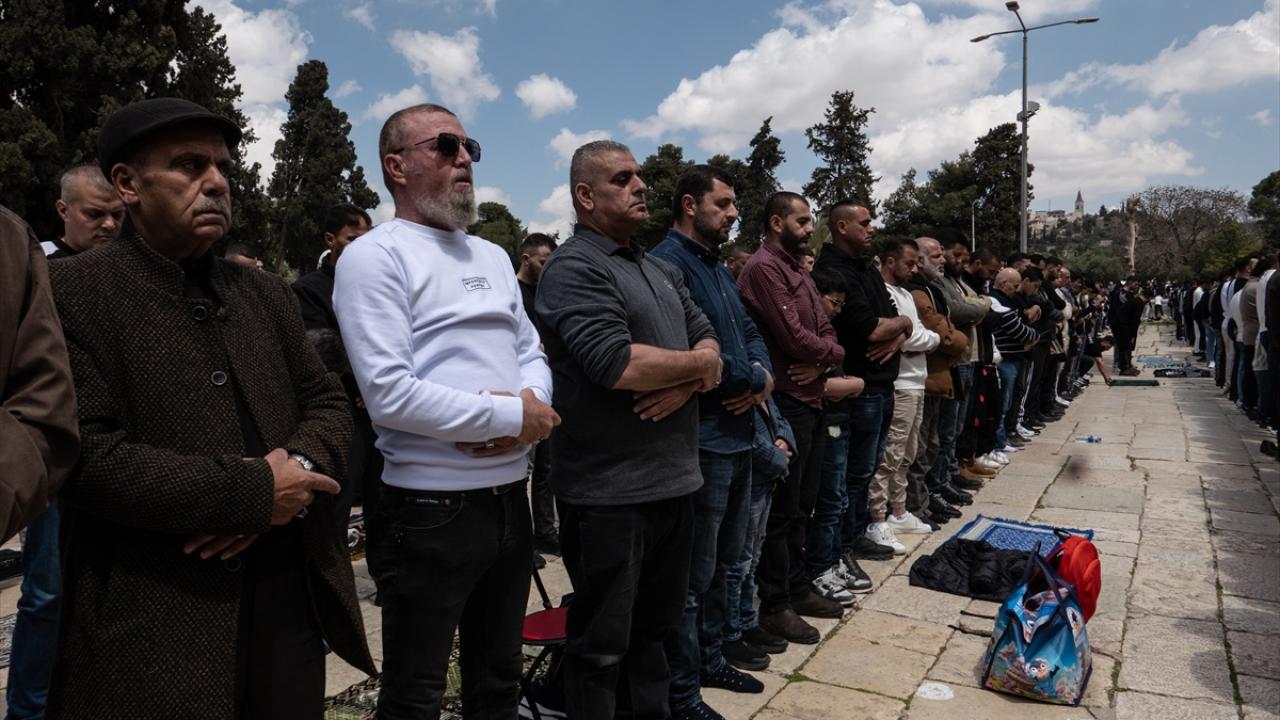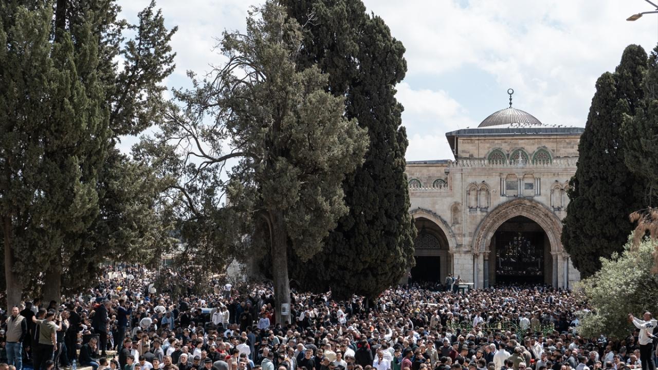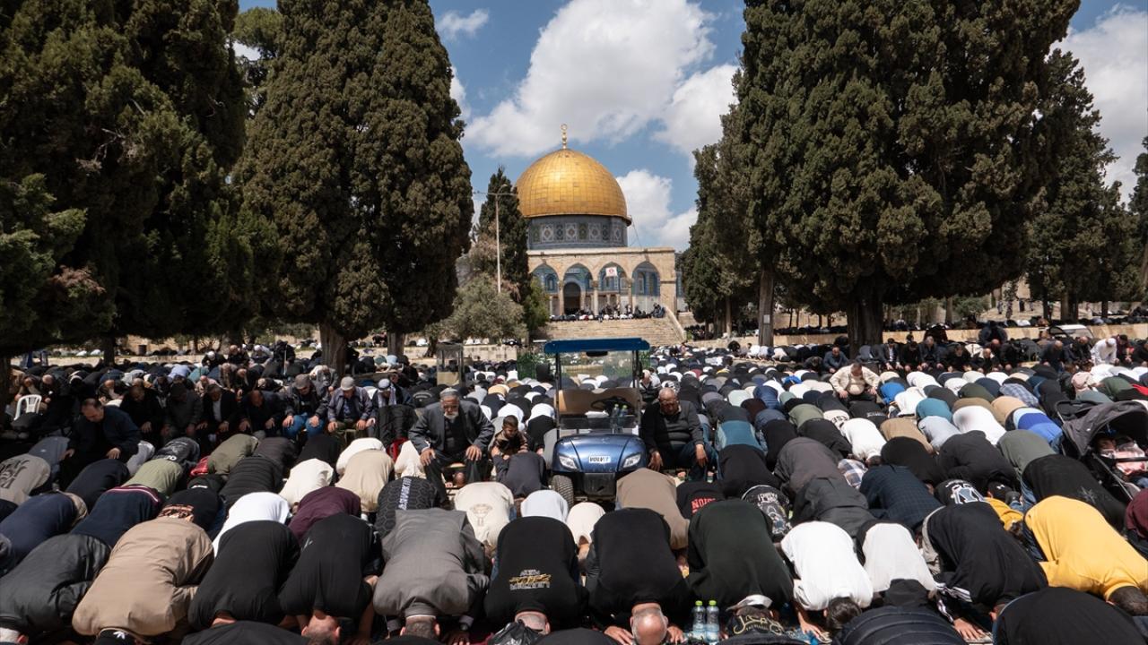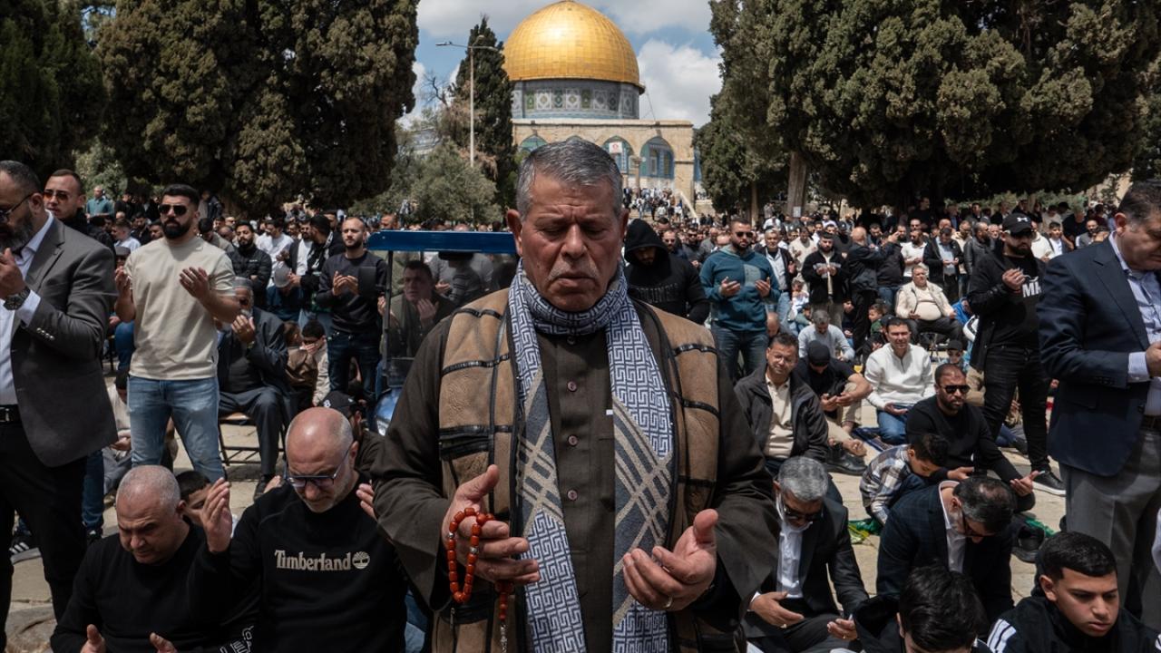 On binlerce Filistinli, İsrail polisinin getirdiği kısıtlamalara rağmen İran`la savaştan bu yana ibadete kapalı olan Mescid-i Aksa`ya gelerek cuma namazını eda etti.