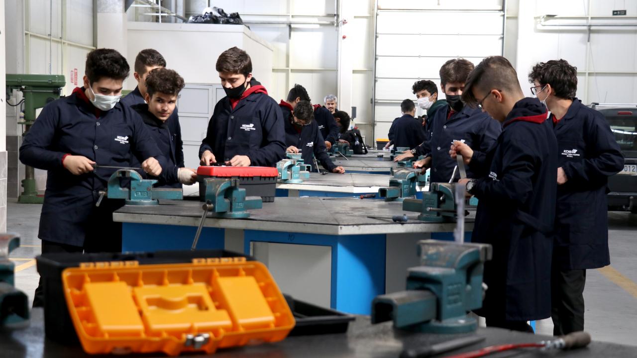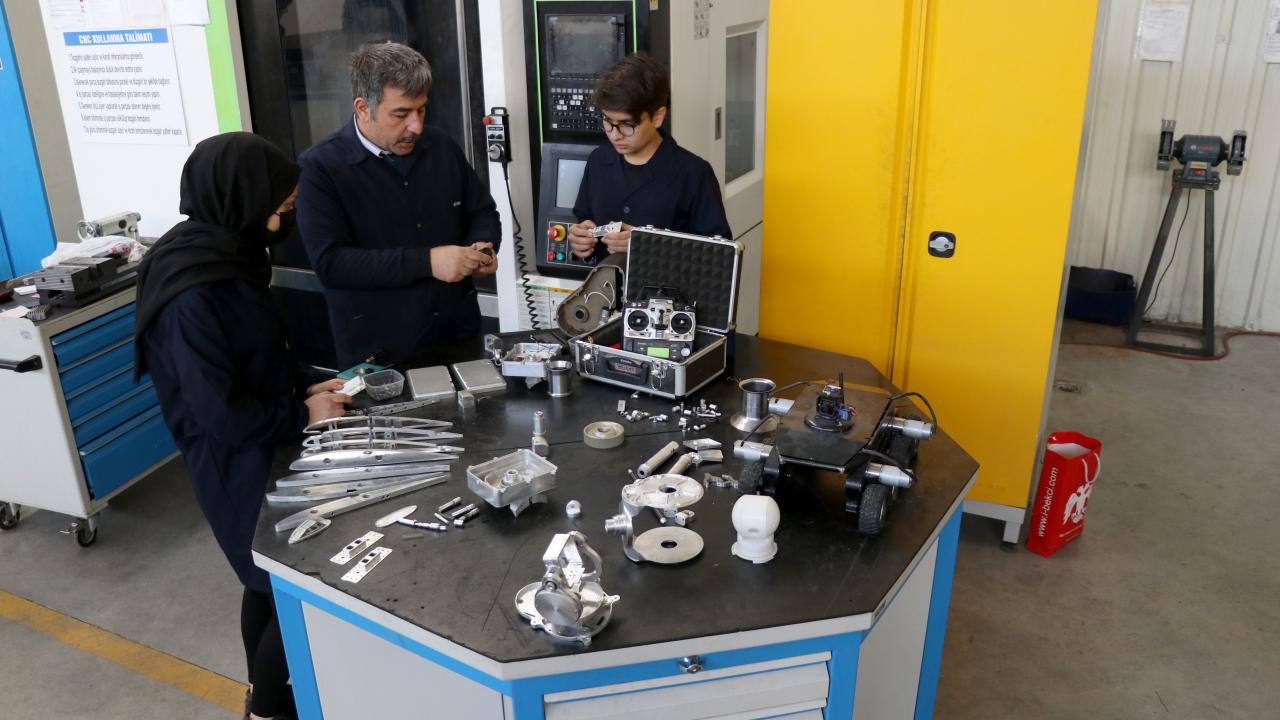 Konya'da, Mehmet Tuza Pakpen Mesleki ve Teknik Anadolu Lisesi öğrencileri ve öğretmenleri, savunma sanayisine seri üretimle 250 çeşit mekanik parça yapıyor.