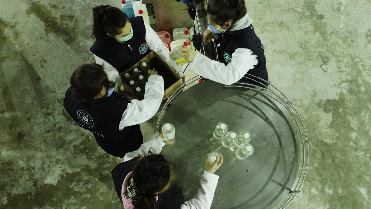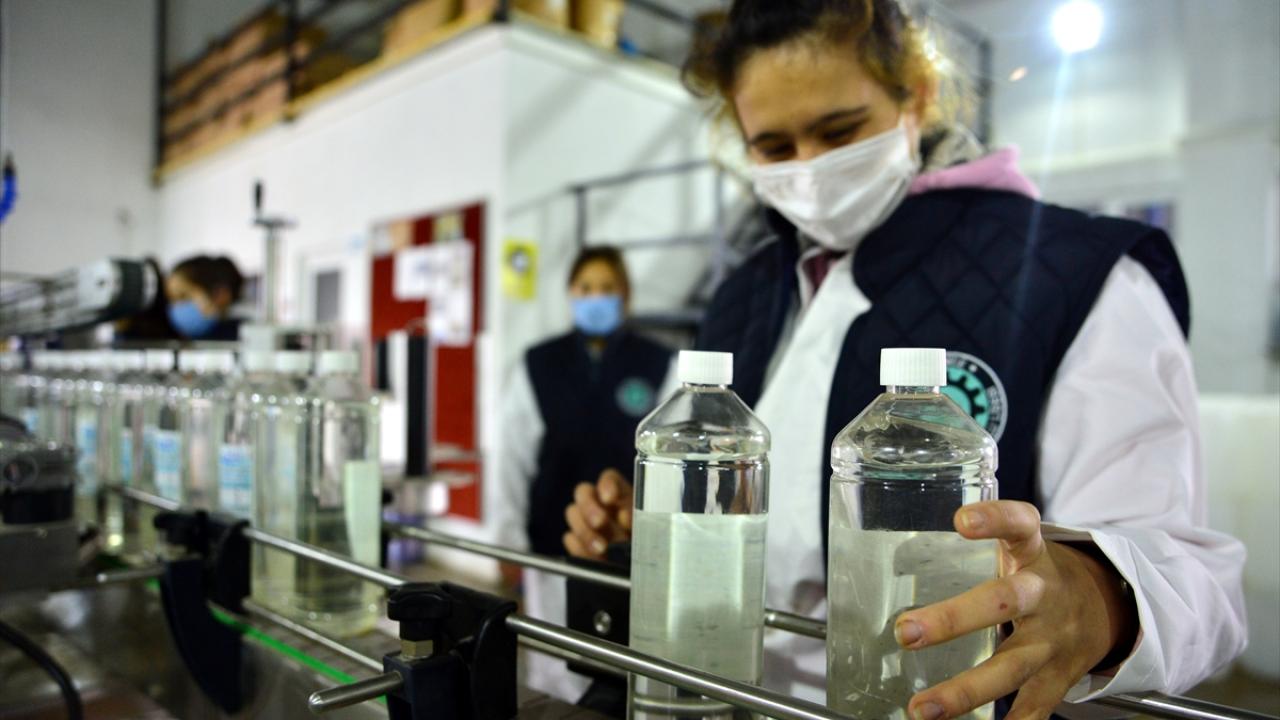 Meslek liseliler salgınla mücadeleye destek olmak için gece gündüz dezenfektan üretiyor