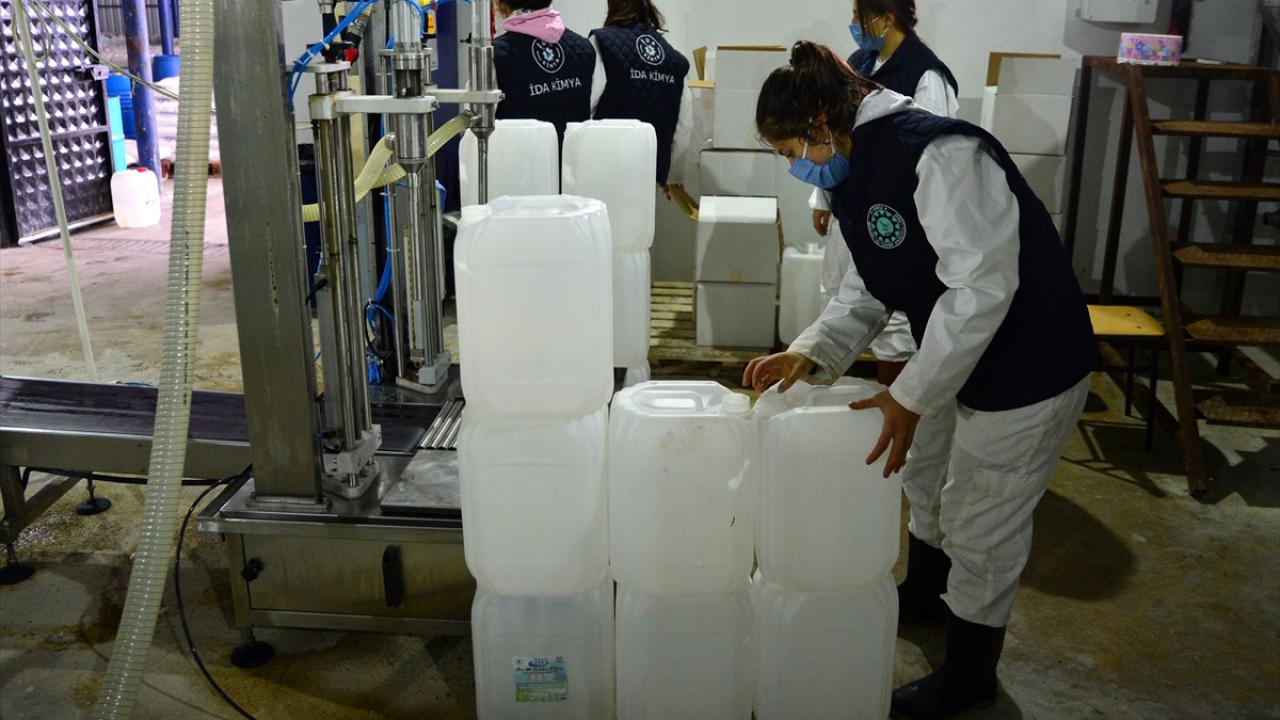 Çanakkale'nin Yenice ilçesindeki Mesleki ve Teknik Anadolu Lisesi (MTAL) öğrencileri ve öğretmenleri, kurumda ürettikleri 500 ton temizlik ürünüyle salgınla mücadeleye destek için gece gündüz aralıksız çalışıp 5 milyon ciro elde etti.