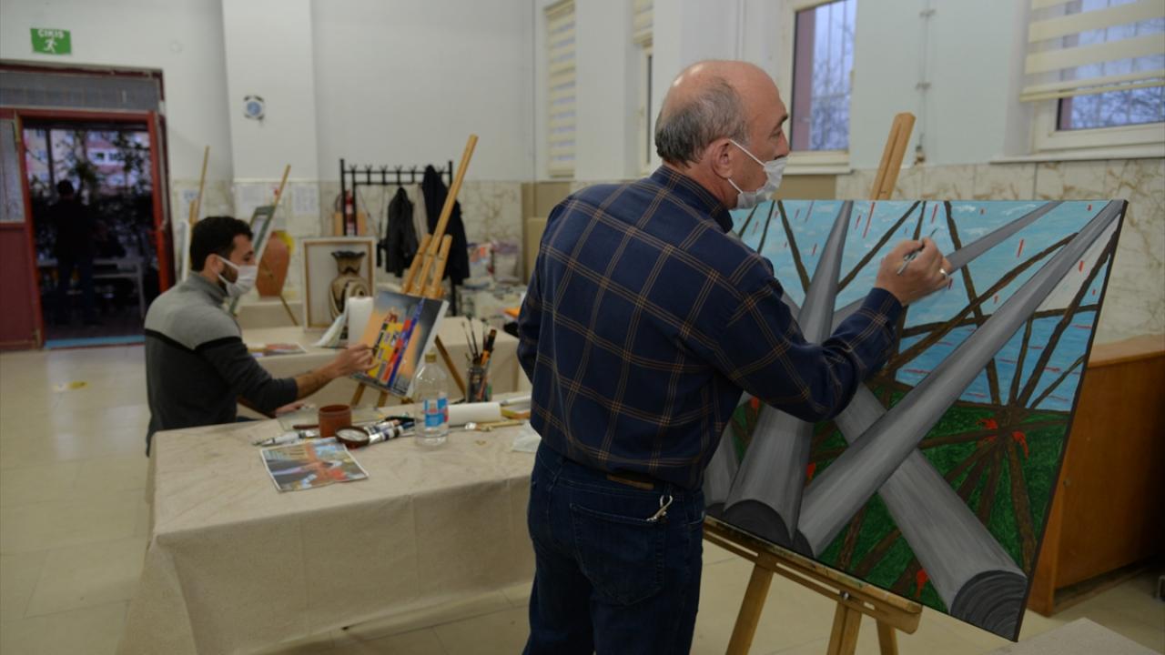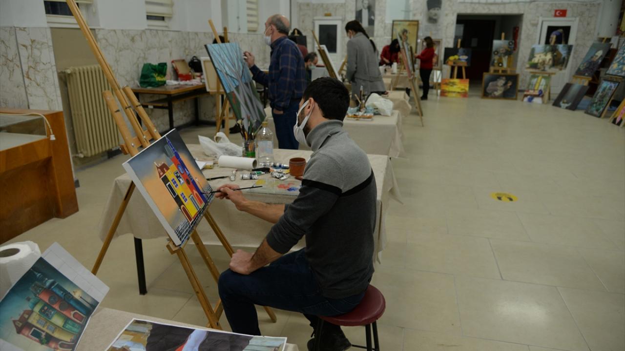 Merkez tarafından açılan resim kursuna aralarında tornacı, iş makinesi operatörü, kamu personeli ve esnaf gibi farklı meslek gruplarından kursiyerler katılıyor.