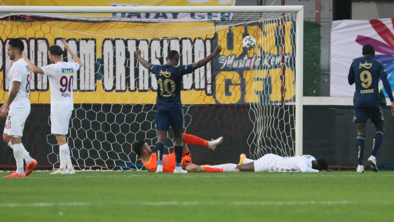 76. dakikada Hatayspor`un sol köşeden kullandığı kornerde kaleci Altay Bayındır`ın elinden kaçırdığı topa Kamara vurdu. Ozan Tufan meşin yuvarlağı çizgiden çıkararak golü önledi.