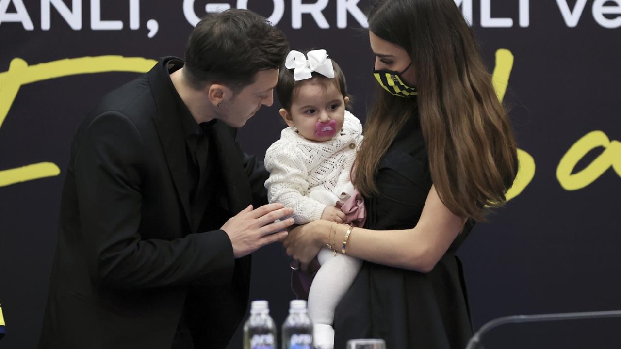 Mesut Özil, eşi Amine Gülşe ve çocuğuyla birlikte tören alanına giriş yaparken, basın mensupları bu duruma yoğun ilgi gösterdi. Özil çocuğu ve eşiyle daha sonra basın mensuplarına poz verdi.