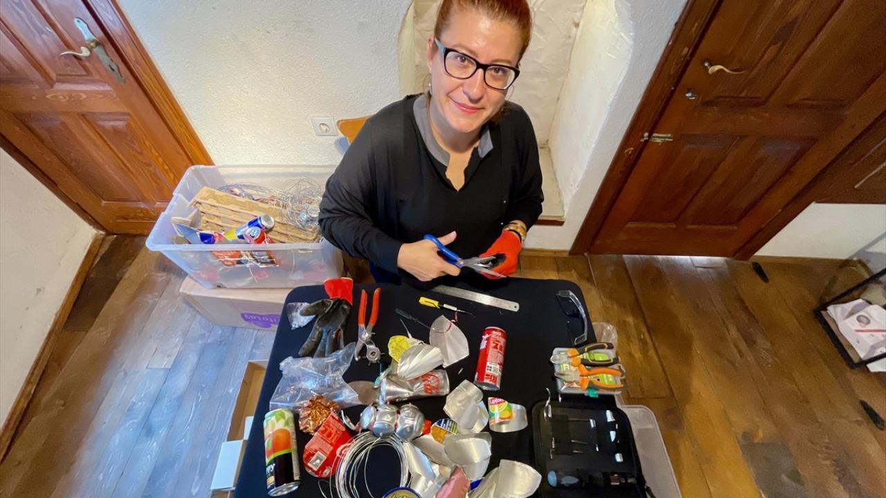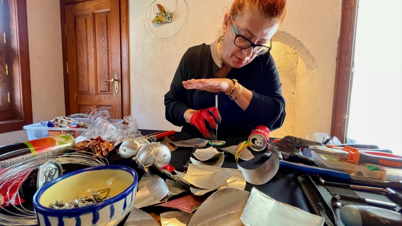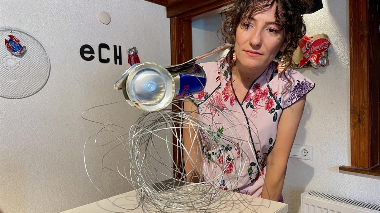 Anadolu Üniversitesinde (AÜ) görevli Doç. Nilgün Salur, çevreye atılması nedeniyle biyoçeşitliliğe ve doğaya zarar veren metal içecek kutularından kaynaklanan olumsuzluğa dikkati çekmek için geri dönüşümle böcek görünümlü eserler yapıyor.