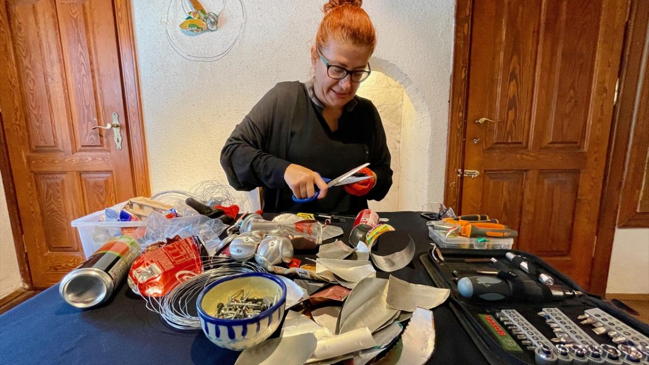 Kendi biriktirdiği ve yakınlarının getirdiği kutulardan 4 yılda 50`yi aşkın "metal böcek" yapan akademisyen, eserlerini Türkiye Çevre Haftası`nda bir sanat galerisinde sergiledi.