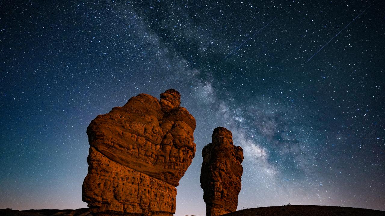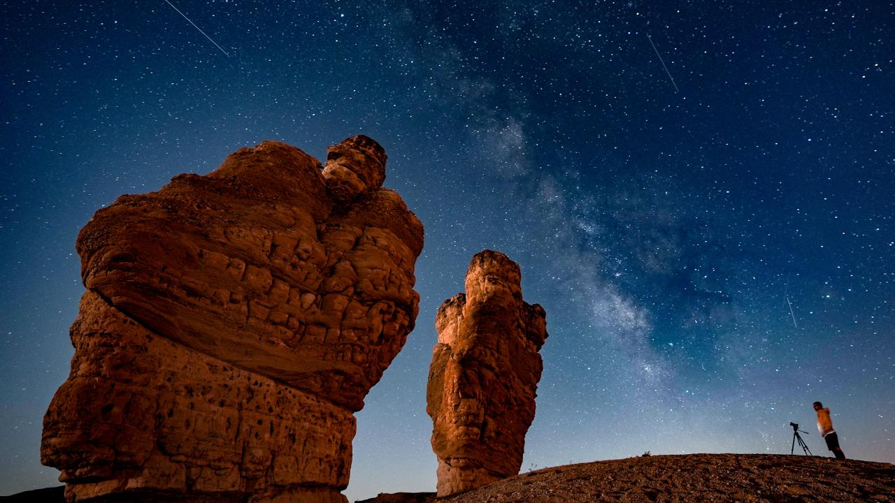 Konya`nın Cihanbeyli ilçesi Kuşça Mahallesi sınırları içerisinde yer alan Kuşça Peribacaları`nda gece saatlerinde gökyüzünde gerçekleşen meteor yağmuru, uzun pozlama tekniğiyle görüntülendi.