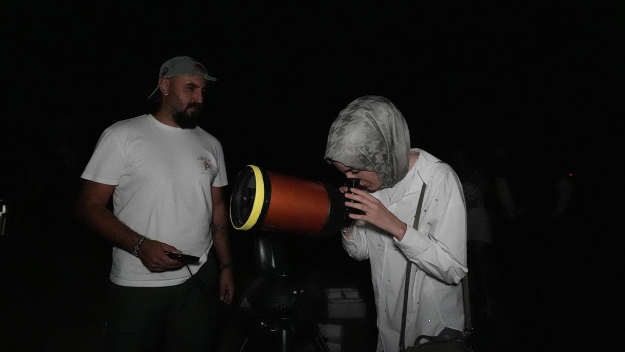 Astronomların, gökyüzü meraklılarına gezegen ve takımyıldızı konusunda bilgilendirme yaptığı etkinlikte, katılımcılar teleskoplarla daha yakından gözlem yapma imkanı da buldu.