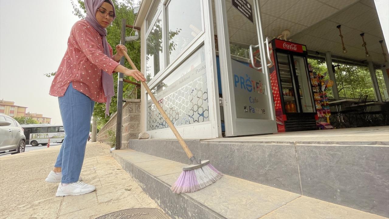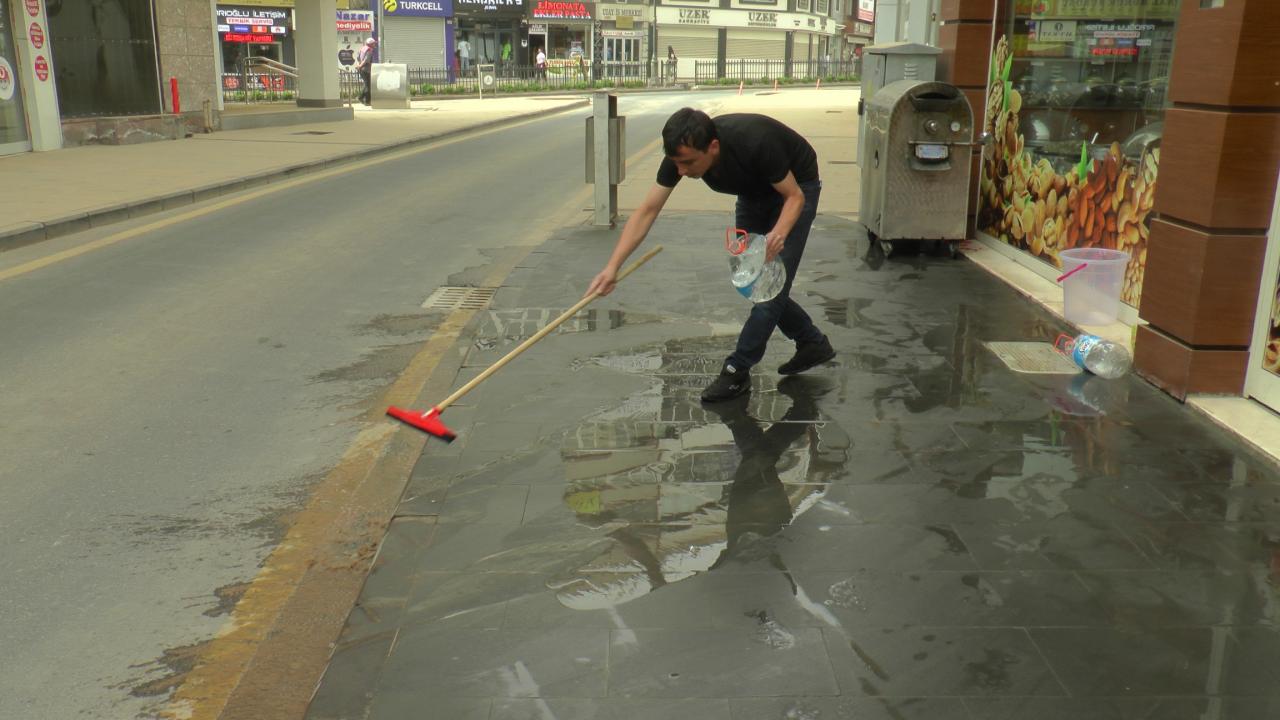 Sürücüler araçlarının üzerinde oluşan tozu temizledi, esnaf da iş yerlerinin önünü süpürüp camlarını sildi.