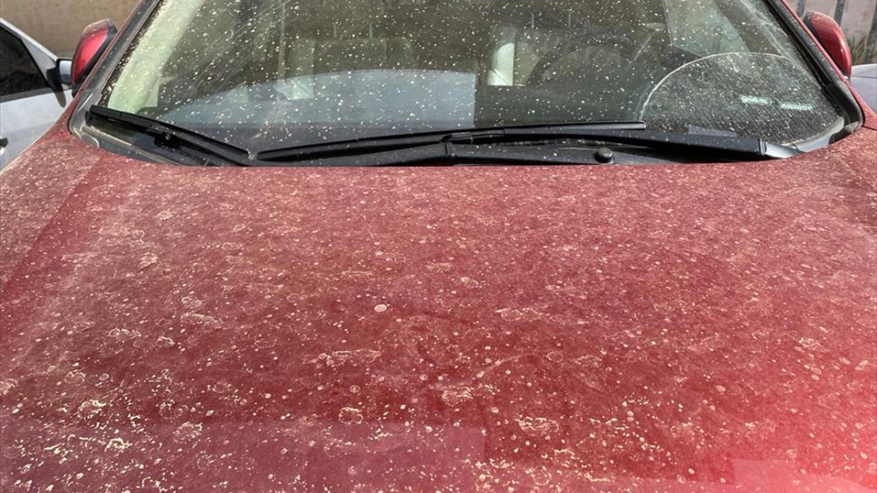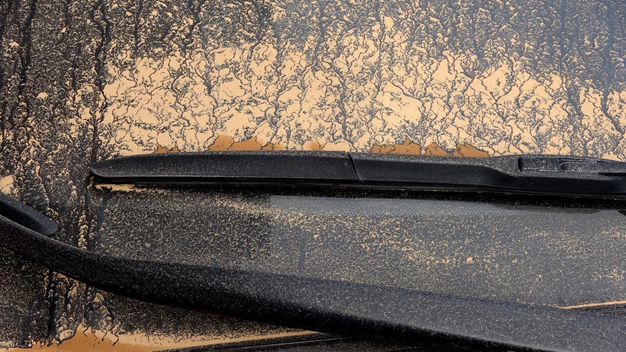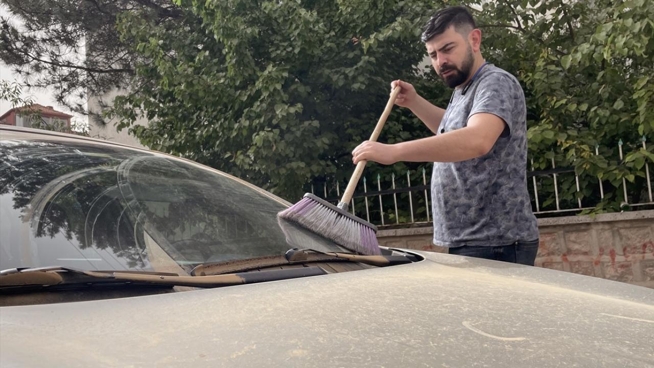 Toz taşınımı nedeniyle görüş mesafesinin de kısmen düştüğü kentte insanlar tozla kaplanan araçlarını temizledi.