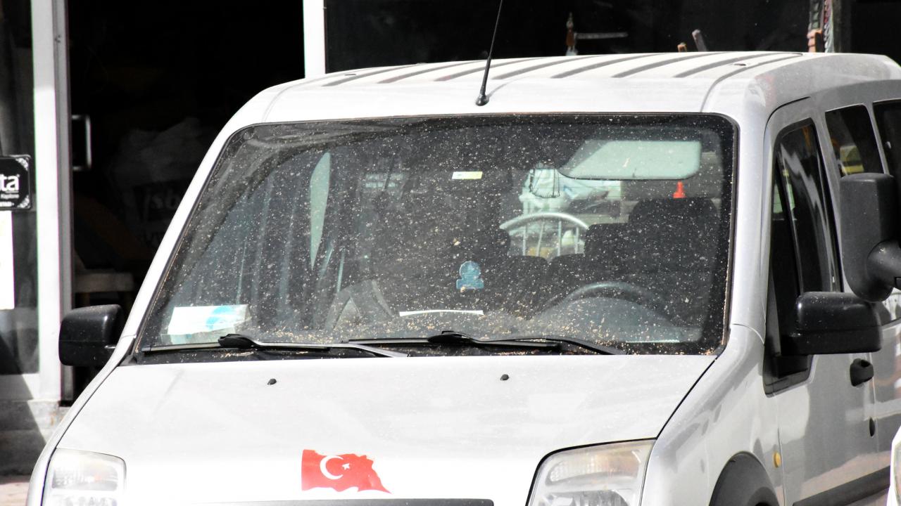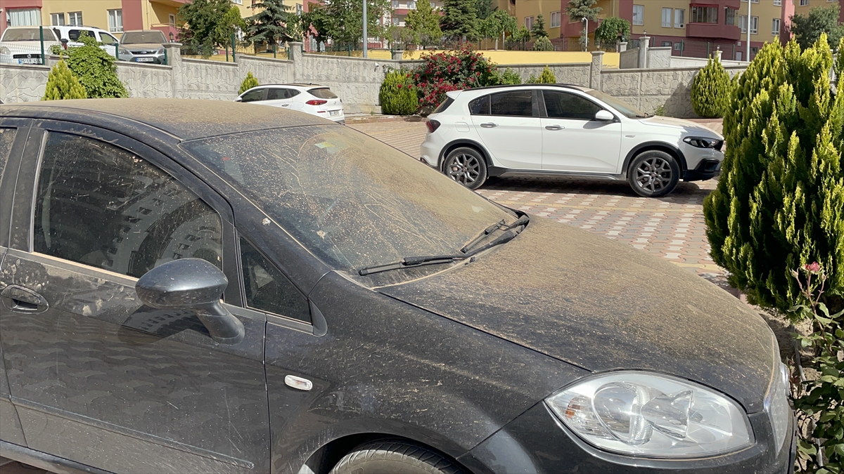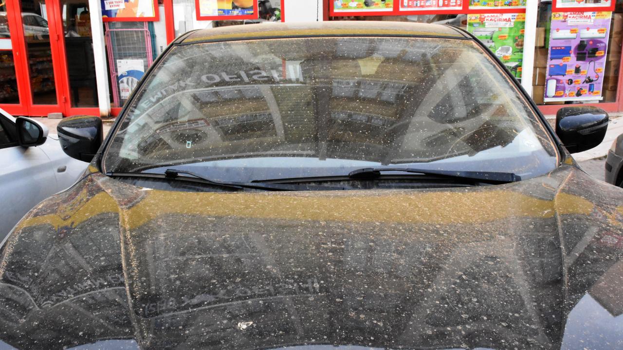 Kentte toz taşınımı nedeniyle, park halindeki araçlar üzerinde toz birikintileri oluştu.