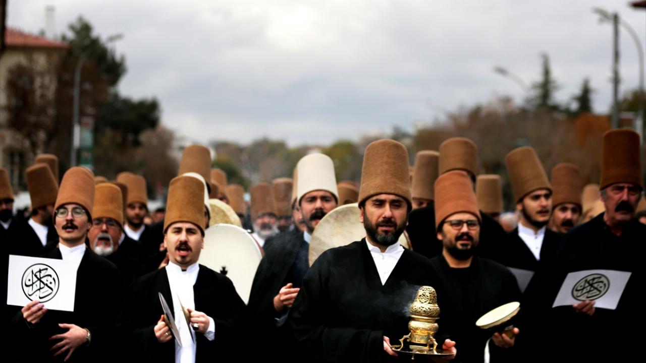 Protokol üyeleriyle vatandaşlar, daha sonra "Vuslat Vakti" temasıyla düzenlenen etkinlikler kapsamında Mevlana Caddesi`nden tekbirlerle Mevlana Meydanı`na kadar yürüdü.