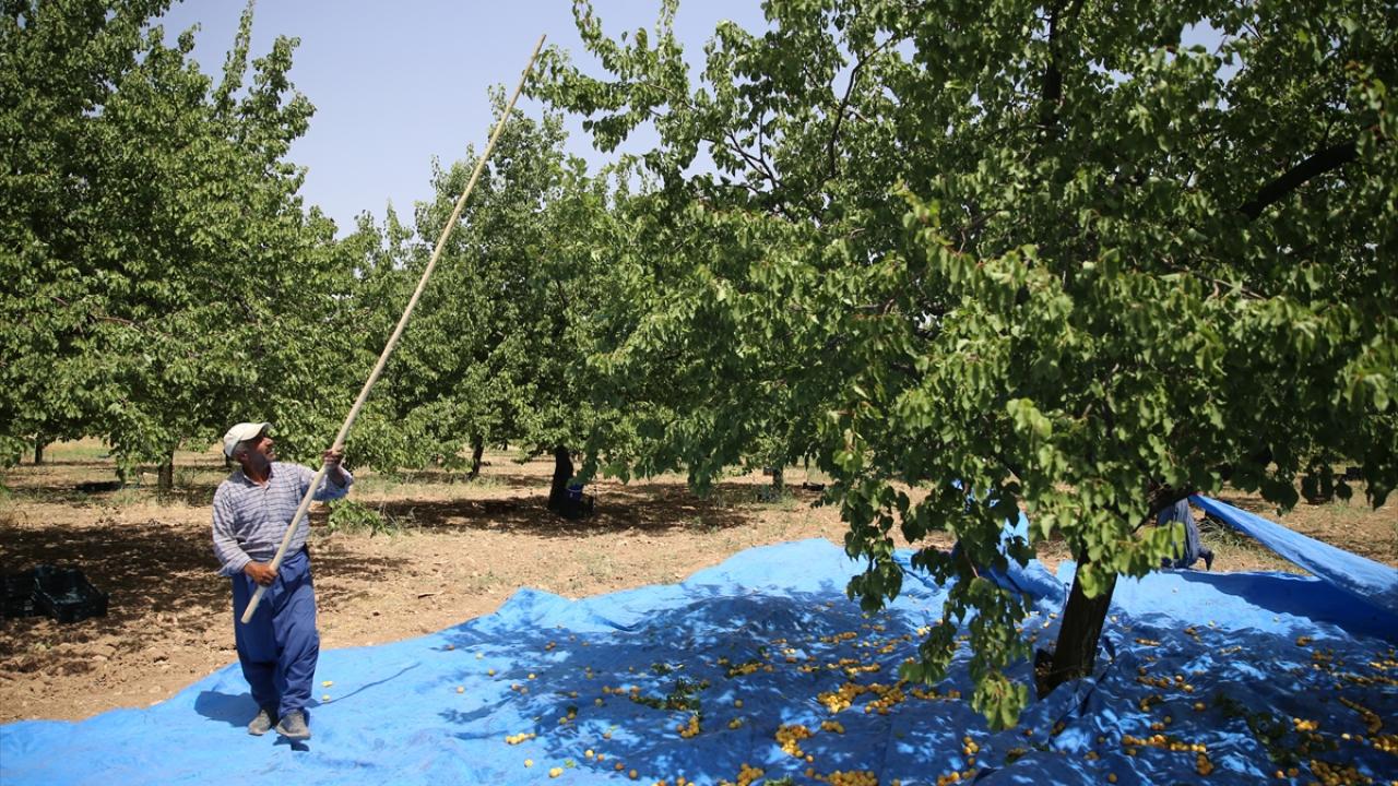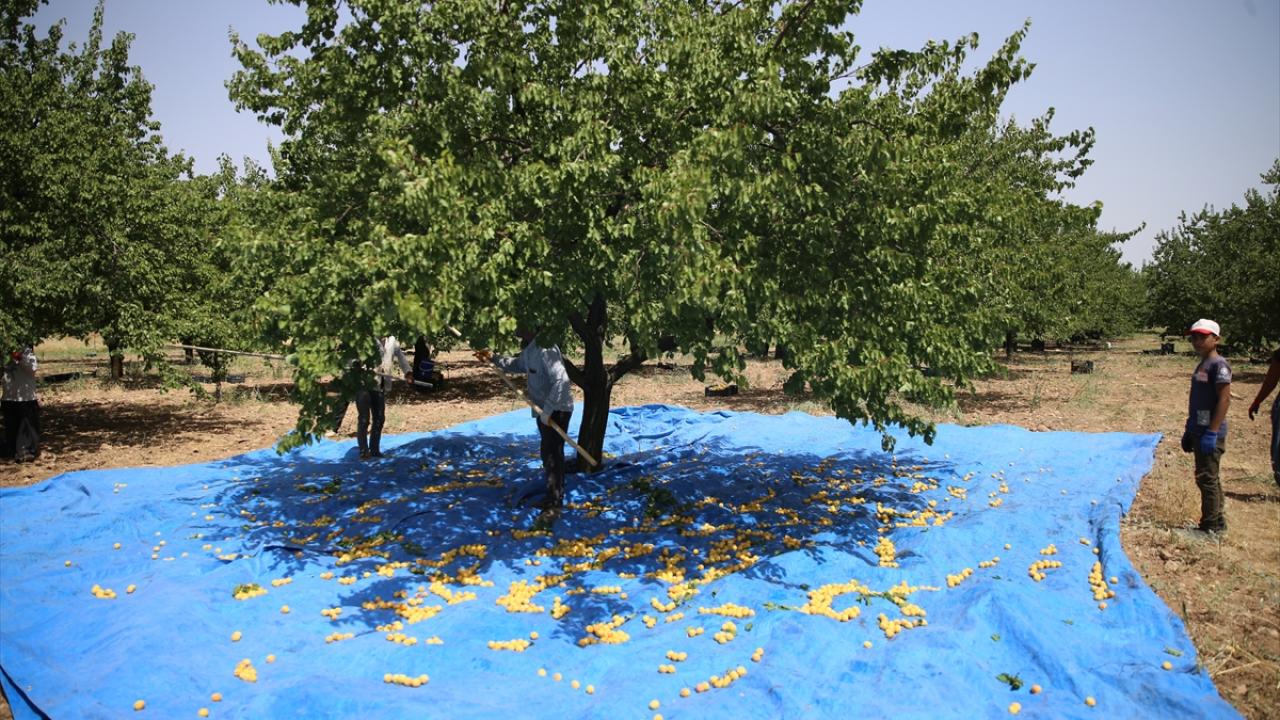 Havanın serin olduğu sabahın ilk ışıklarıyla işe koyulan tarım işçileri, gün içinde 35 dereceyi aşan sıcaklığa aldırmadan, makine yardımıyla silkelenen ağaçlardan dökülen kayısıları toplayıp kasalara koyuyor ve işlenmeye hazır hale getiriyor.