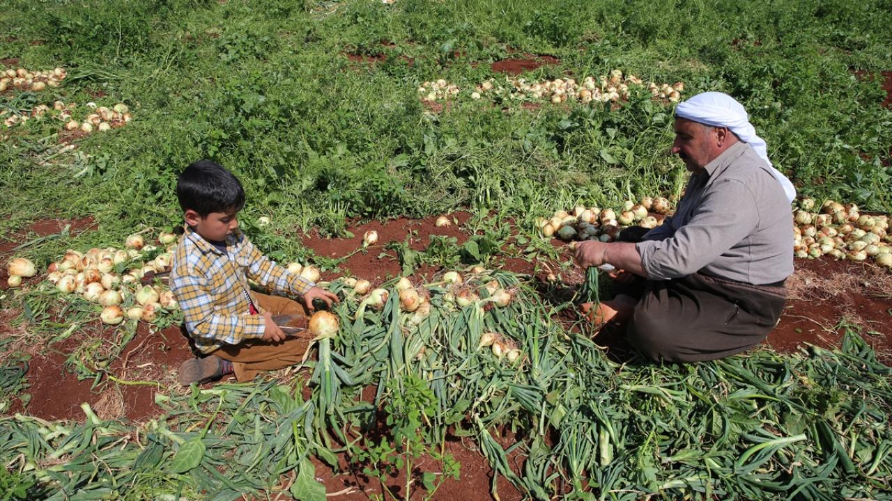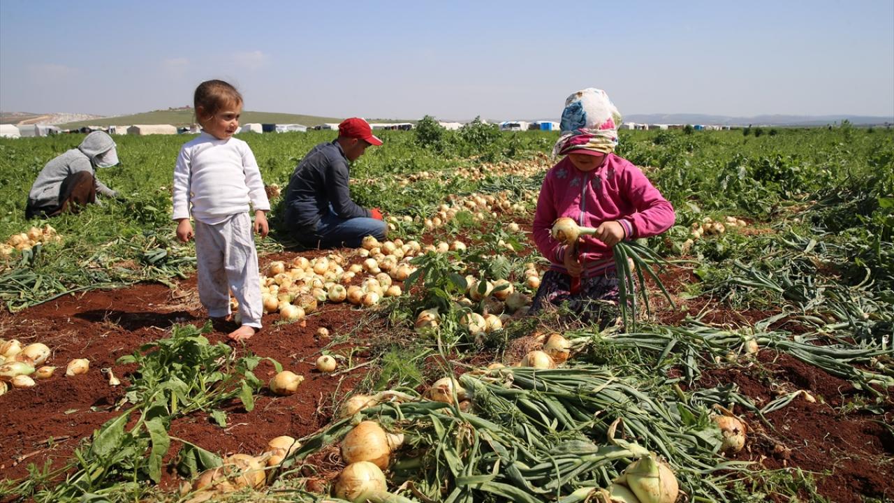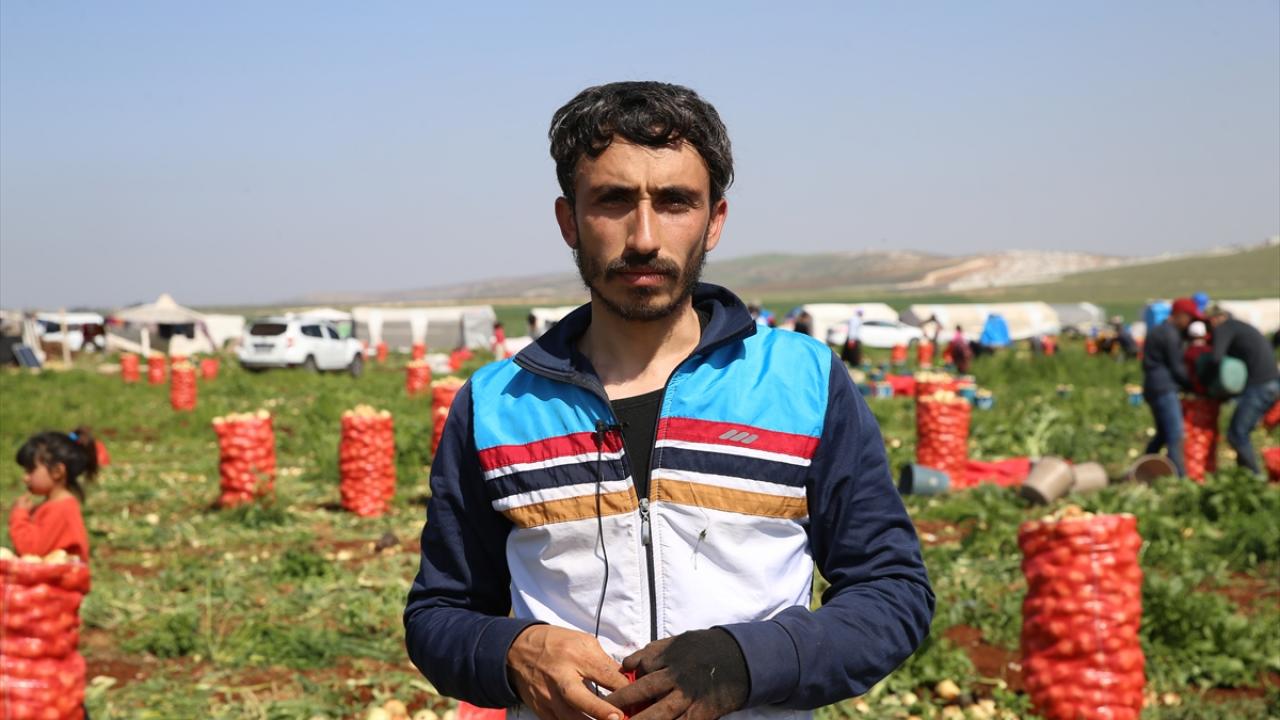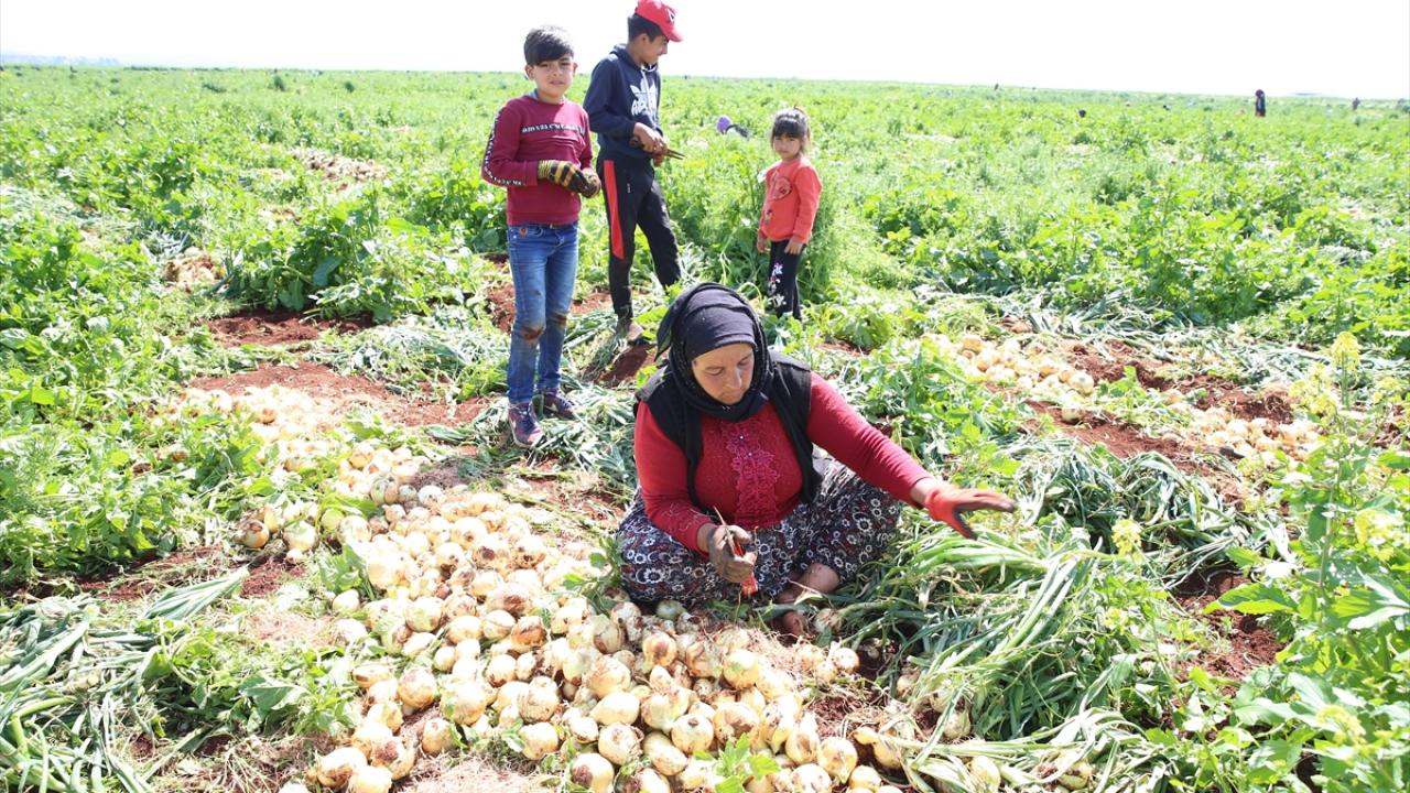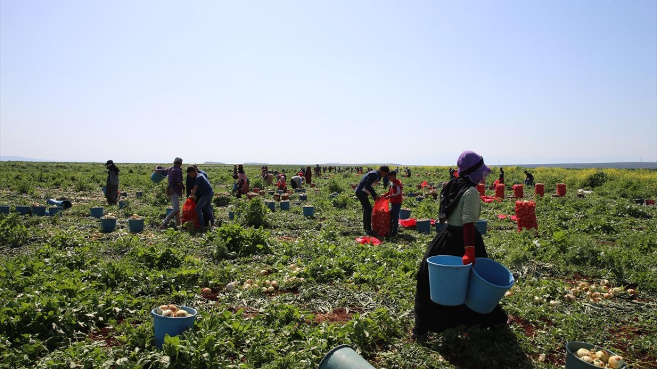 Soğan toplayan işçilerden Bedir Kutlu, ailesinin rızkını kazanmak için Şanlıurfa`dan Hatay`a geldiğini söyledi.