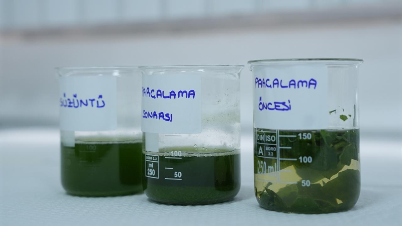 Proteinlerin hasat sonrası alınan yaprakların ön temizleme işleminden geçirilmesinin ardından farklı yöntemlerle küçük parçalara ayırılıp çözelti ortamına geçirilerek elde edildiğini anlatan Kabasakal, bu aşamada kullanılan farklı çözücülerle protein verimini artırmaya çalıştıklarından bahsetti.