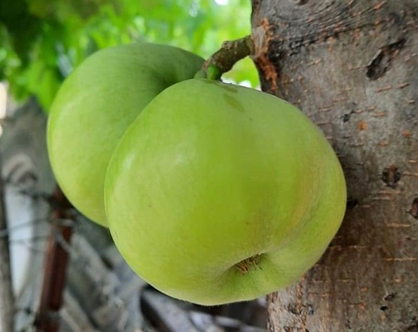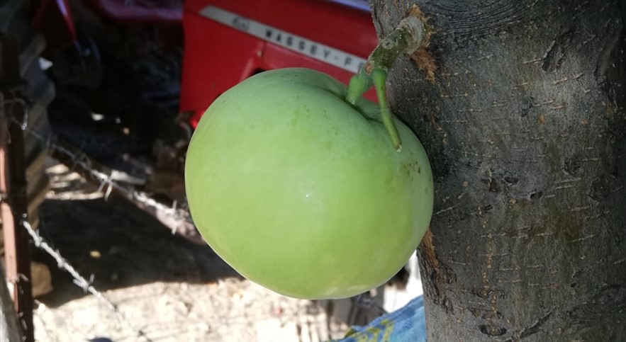 Elazığ'ın Keban ilçesindeki bir elma ağacı gövdesinde meyve verdi.