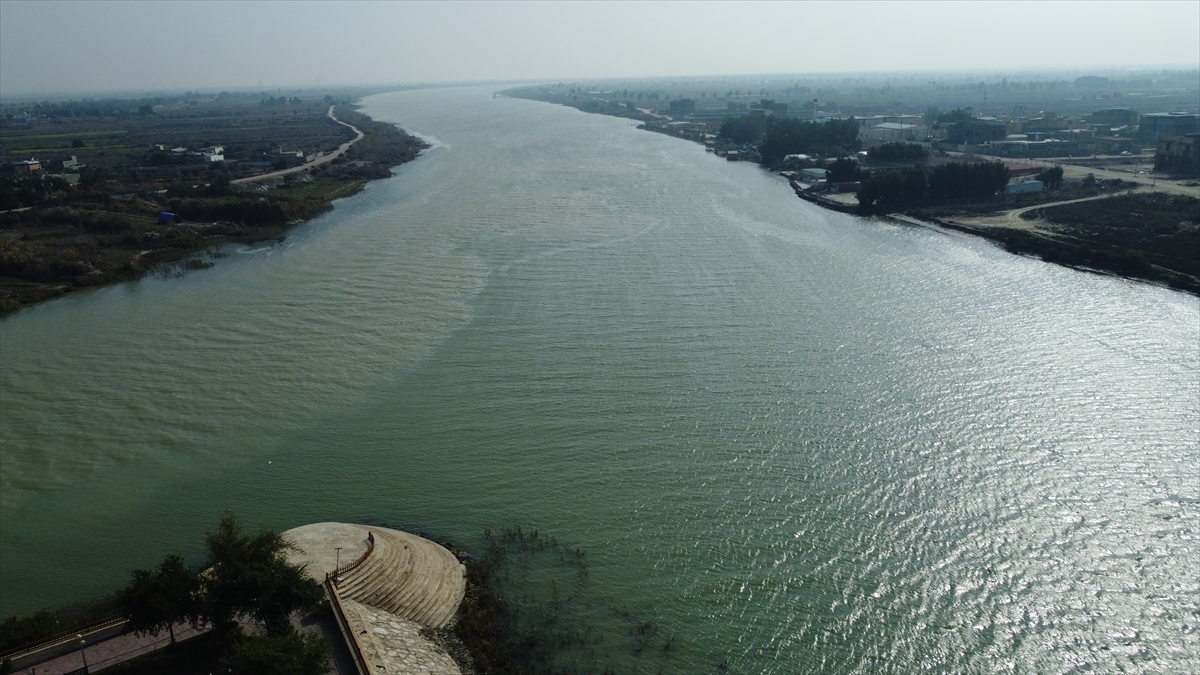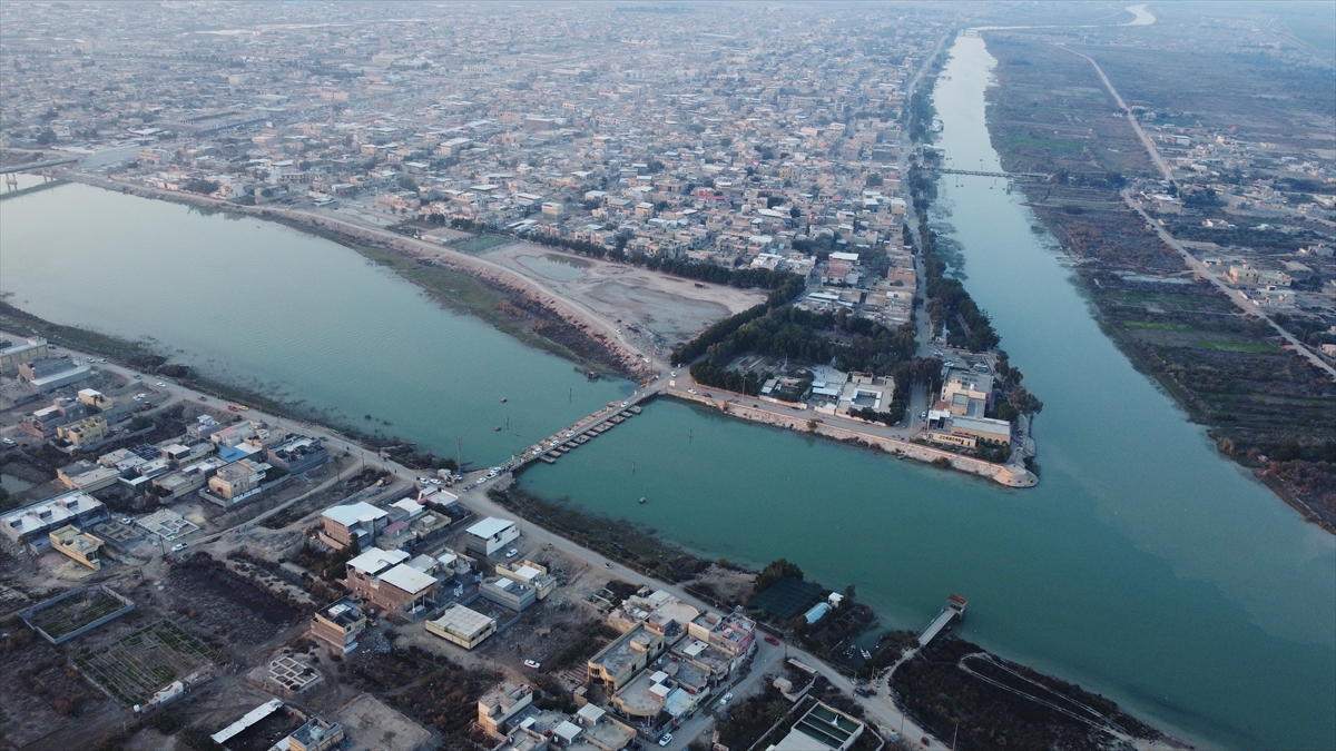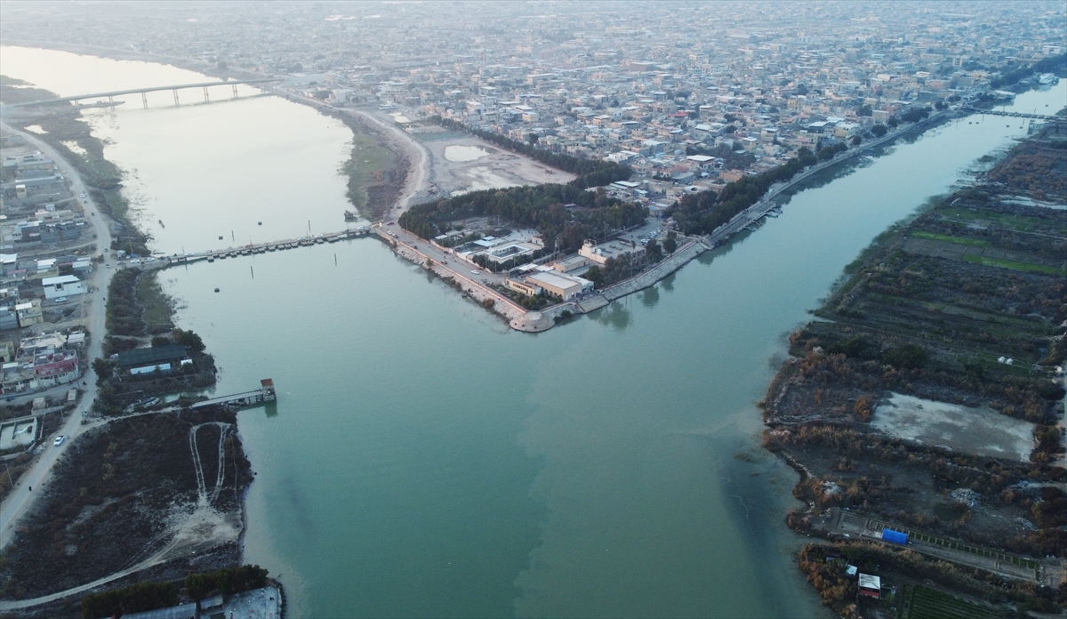 Fırat ile Dicle nehirlerlerinin birleştiği yer, dron ile havadan görüntülendi.