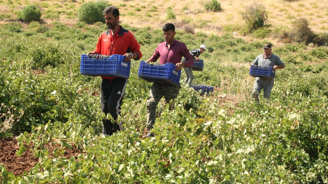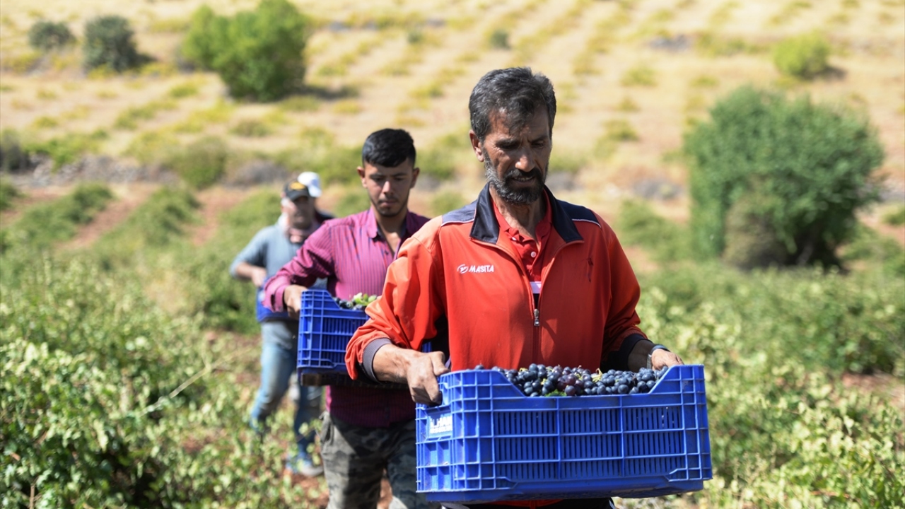 Bağlarında yetişen üzümleriyle meşhur Ömerli ilçesinde de aromasıyla bilinen "mezrone" cinsi üzümün bağ bozumu yapılıyor.