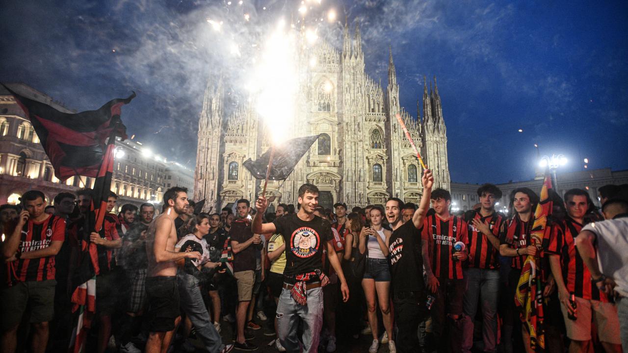 Milan`ın Sassuolo`yu yenerek şampiyon olmasının ardından kırmızı-siyahlı taraftarlar, 11 yıl sonra gelen şampiyonluğu büyük coşkuyla kutladı.