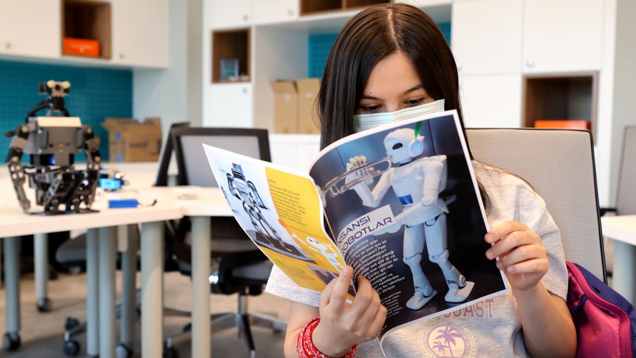 Cumhurbaşkanlığı Millet Kütüphanesi Teknoloji Atölyesi'nde 13-15 yaş grubundaki çocukları bilim ve teknoloji çalışmalarına yönlendirmek amacıyla "İnsansı Robot" eğitimi verilmeye başlandı.