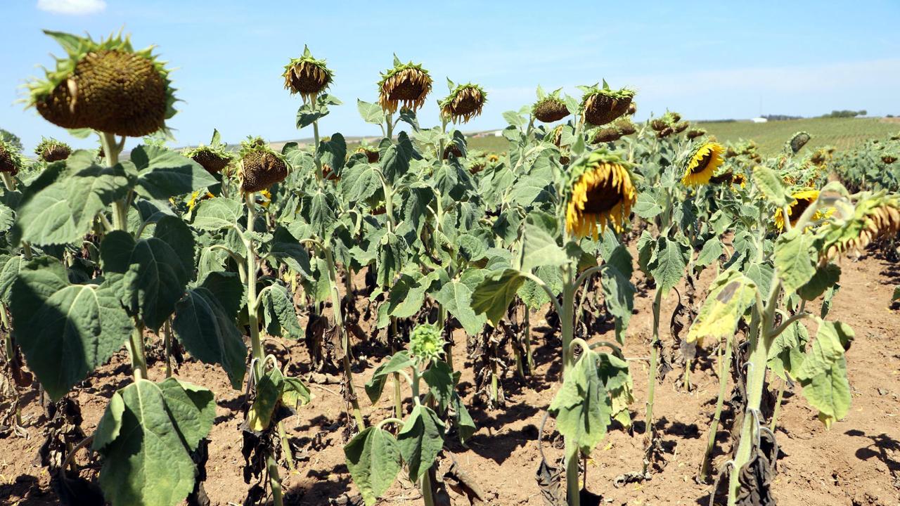 Trakya`da yaşanan kuraklık bu yıl ayçiçeğinde yüzde 42 oranında rekolte kaybına neden oldu. Kuraklıktan en fazla etkilenen Tekirdağ`da bazı üreticiler, ayçiçeği tarlalarını verim kaybı nedeniyle biçemedi.