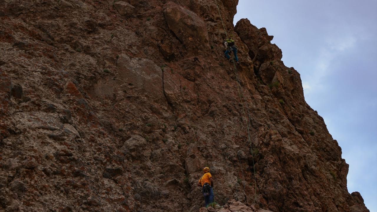 Farklı dağ ve kayalarda tırmanış yapıp yeni rotalar belirlemek için Hakkari`ye gelen milli dağcılar Fındık ve Aktuyun, Cilo Dağcılık ve Doğa Sporları Kulübü Başkanı Hacı Tansu ile Cennet Cehennem Vadisi`ne çıktı.