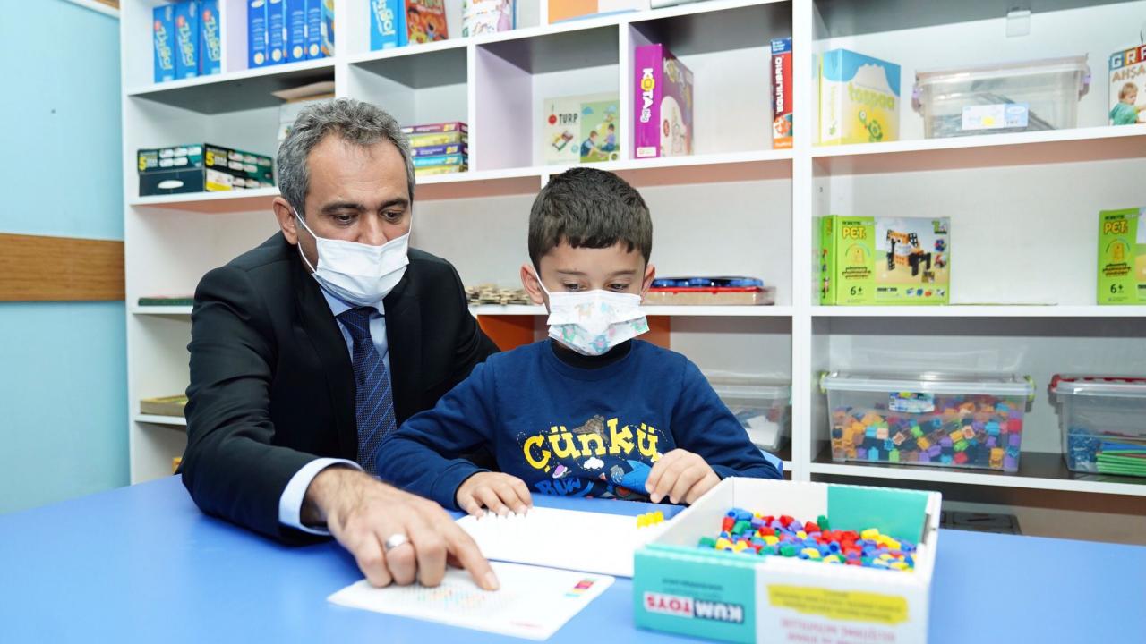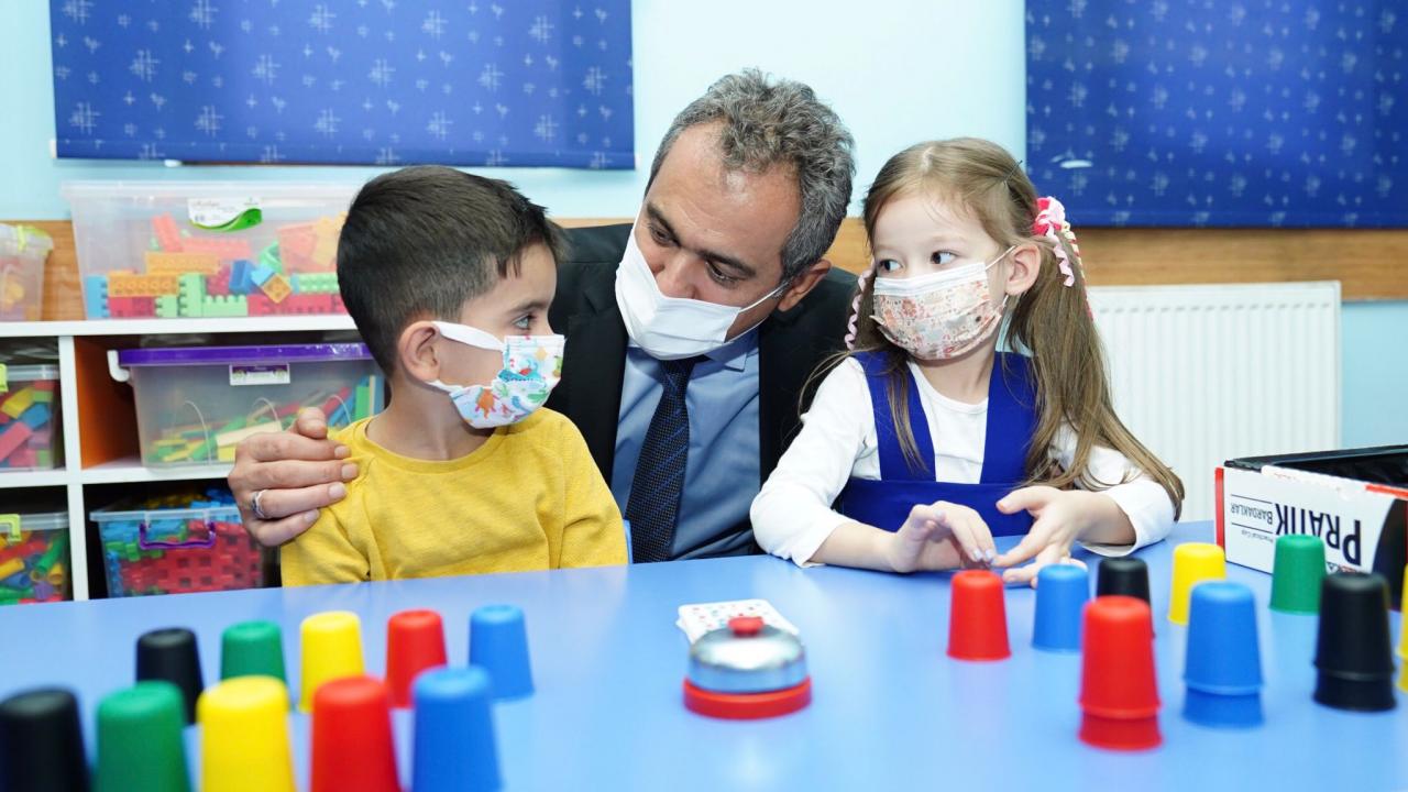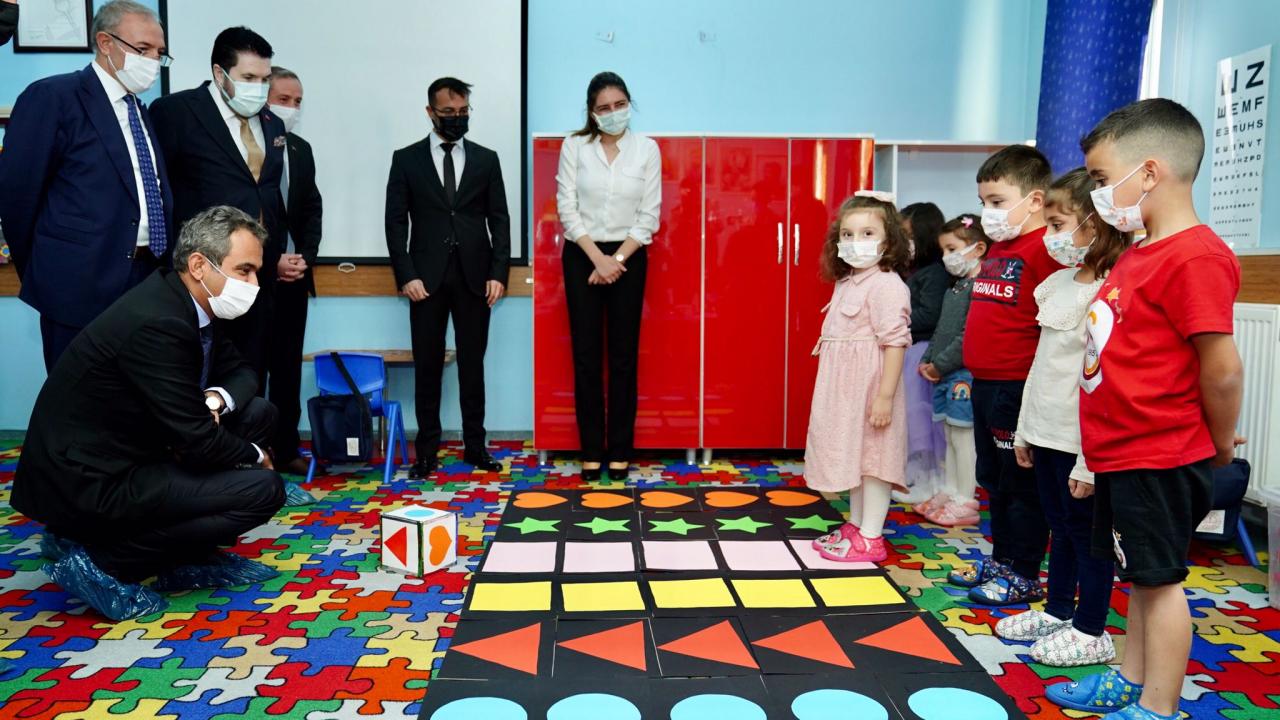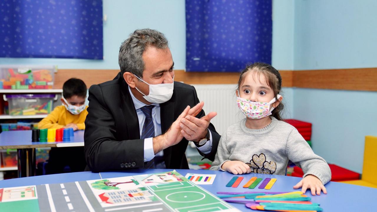 Bakan Özer, anaokulundaki çocuklarla oyunlar oynadı, öğretmenlerle de görüşerek taleplerini dinledi.