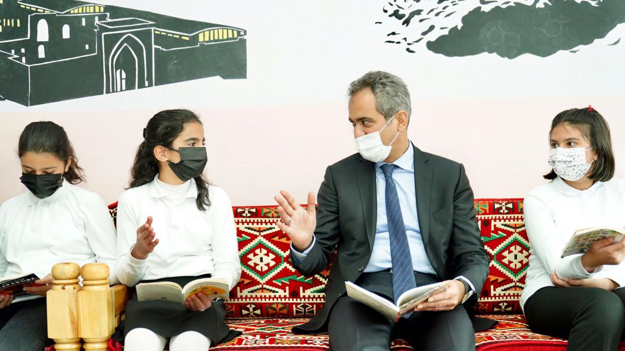Okullarda dağıtımına başlanan yardımcı kaynak kitapları sıralarda gören Özer, çocuklara birlikte inceledikleri bu kitaplar hakkında görüşlerini sordu.