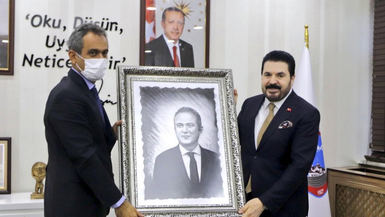Bakan Özer, İl Eğitim Değerlendirme Toplantısı`nın ardından beraberindekilerle Ağrı Belediye Başkanı Savcı Sayan`ı makamında ziyaret eti.