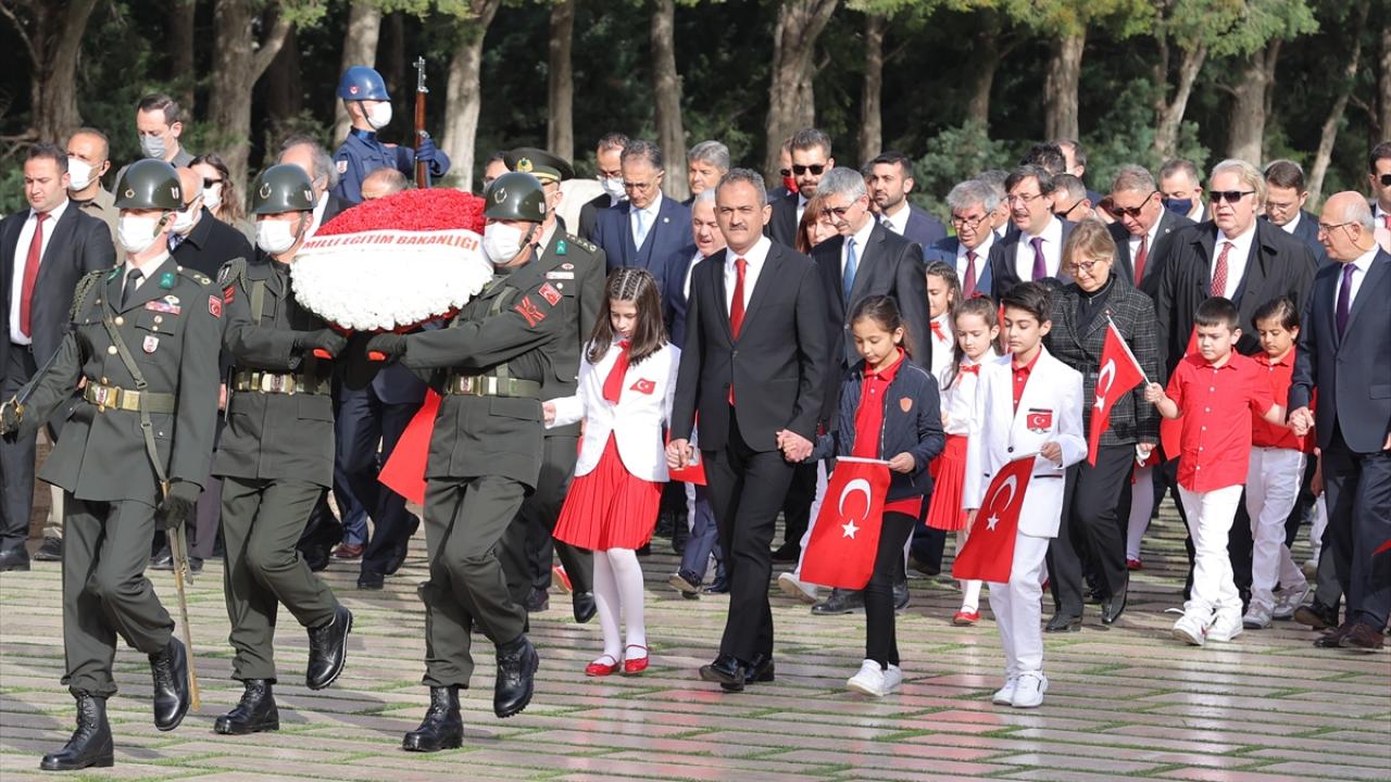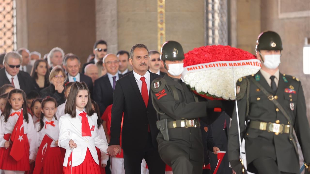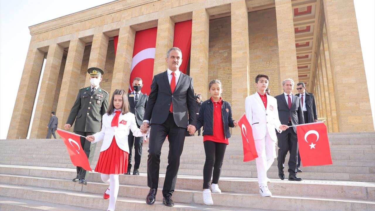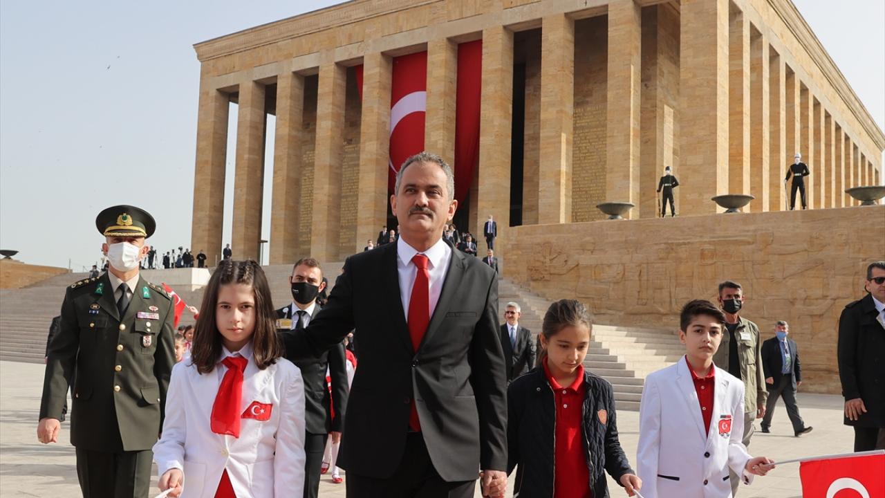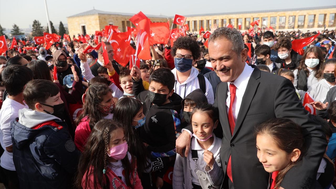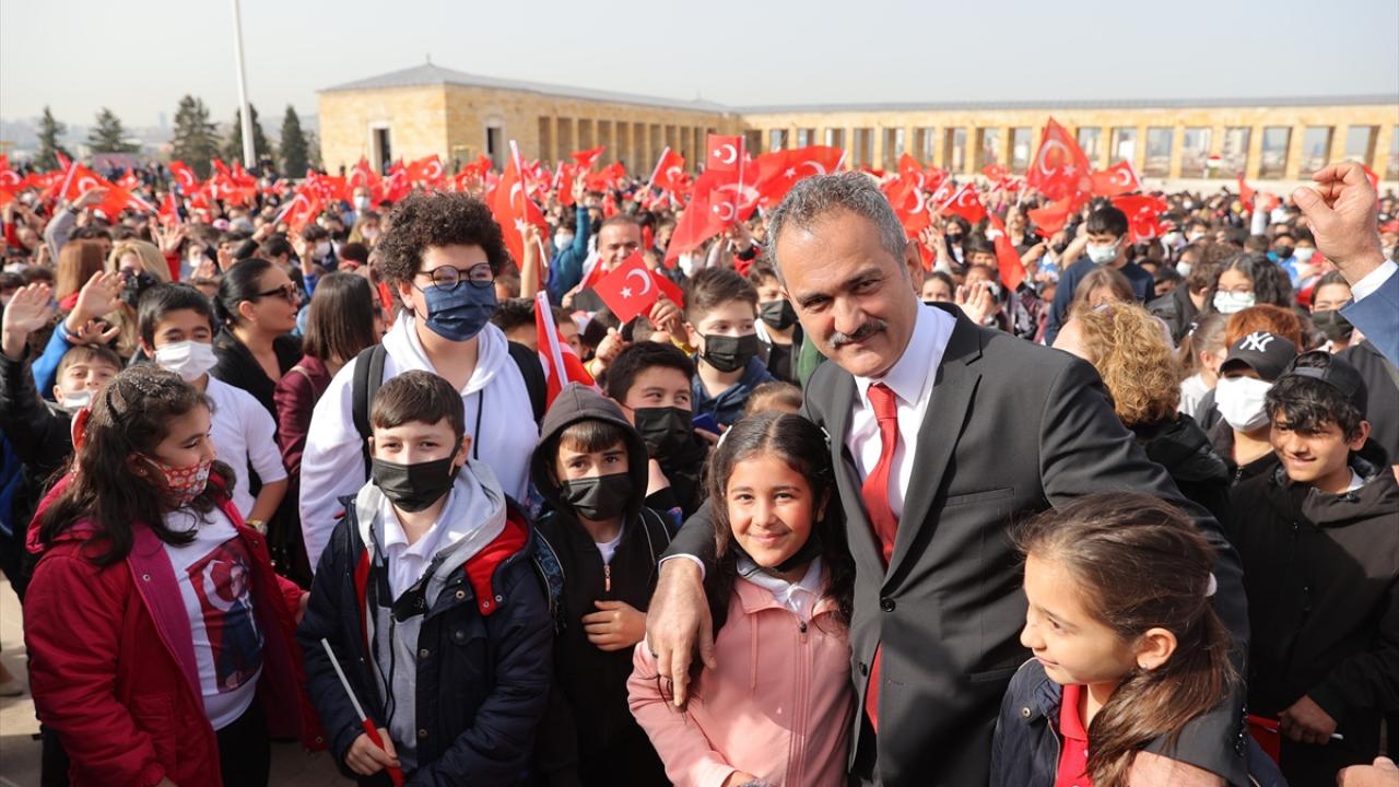 Anıtkabir merdivenlerinde hatıra fotoğrafı çektirilmesinin ardından Bakan Özer, bayramını kutladığı öğrencilerle bir süre sohbet etti.