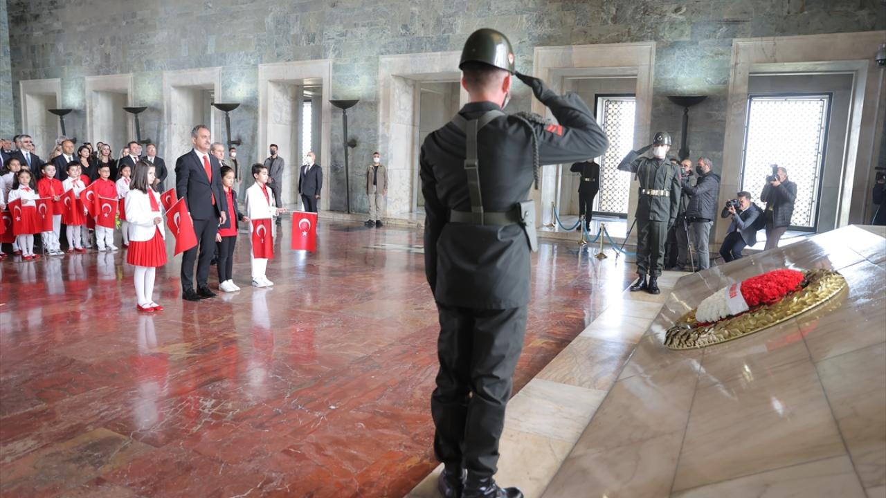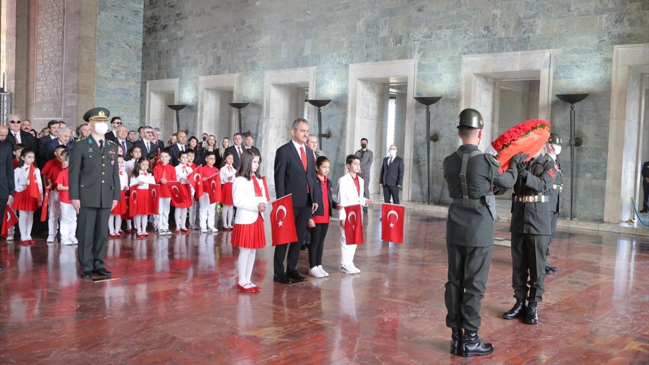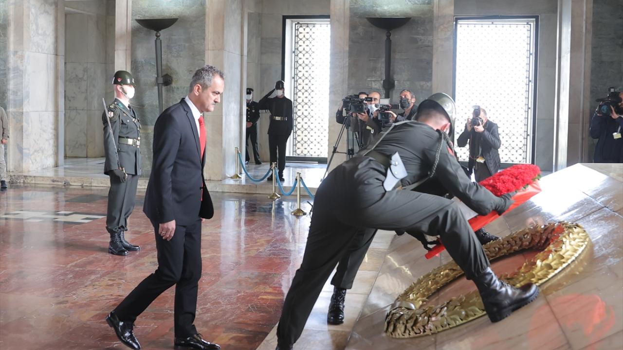Özer`in mozoleye çelenk bırakmasının ardından saygı duruşunda bulunuldu ve İstiklal Marşı okundu.