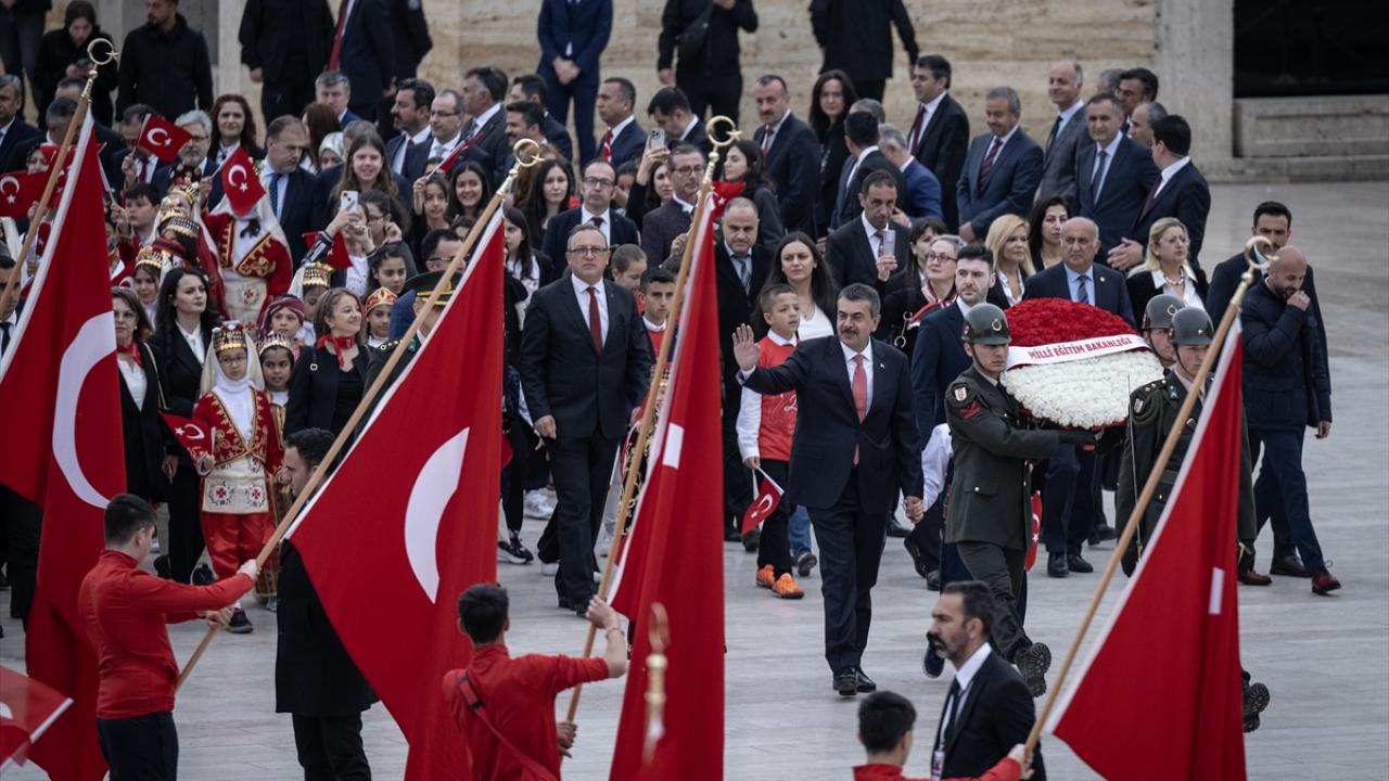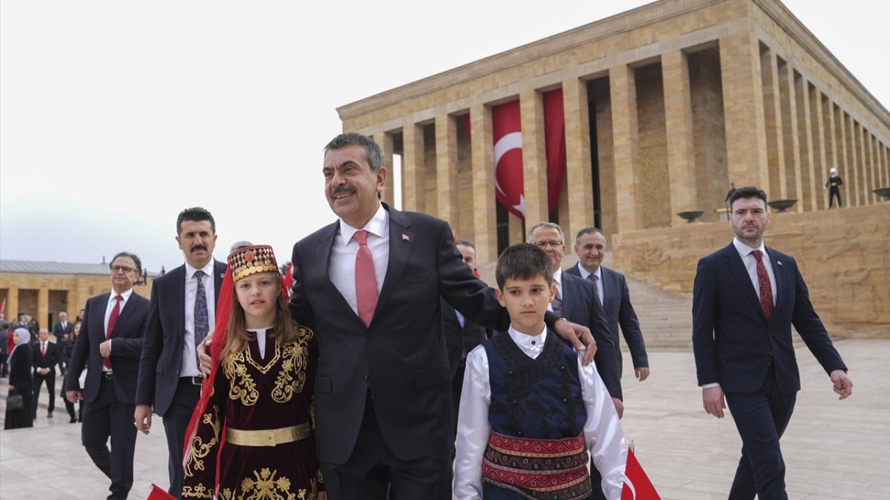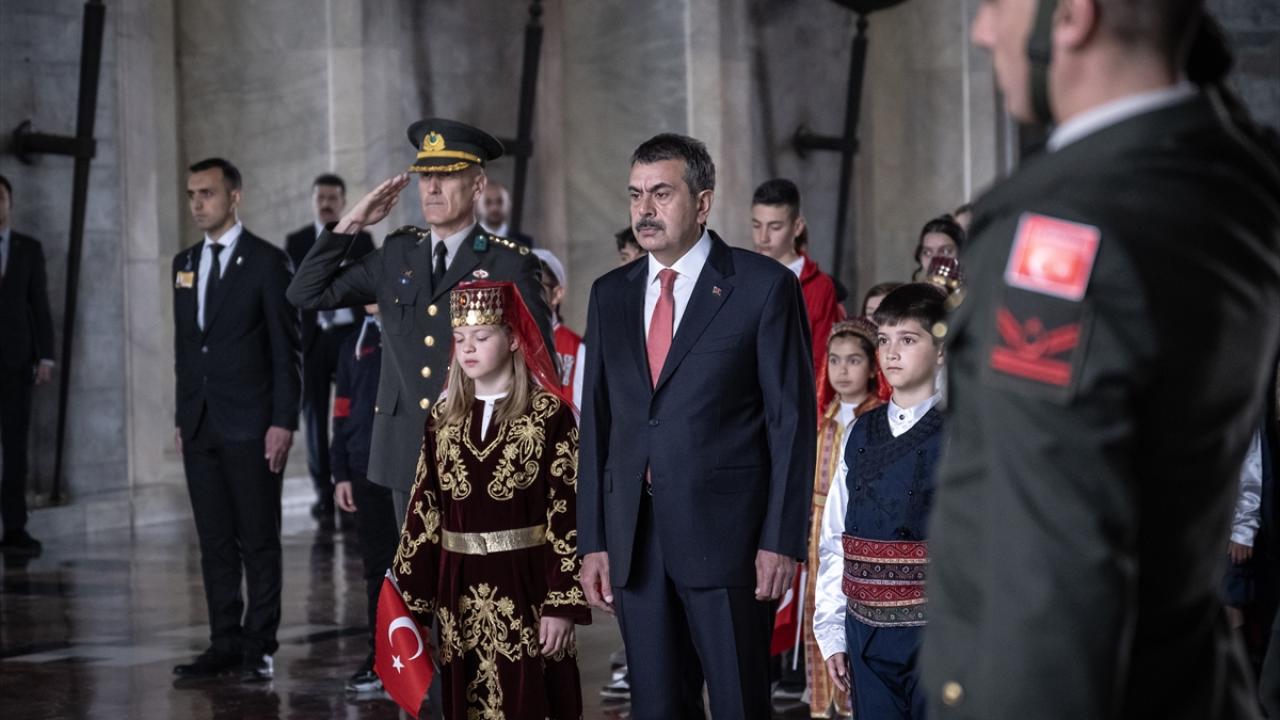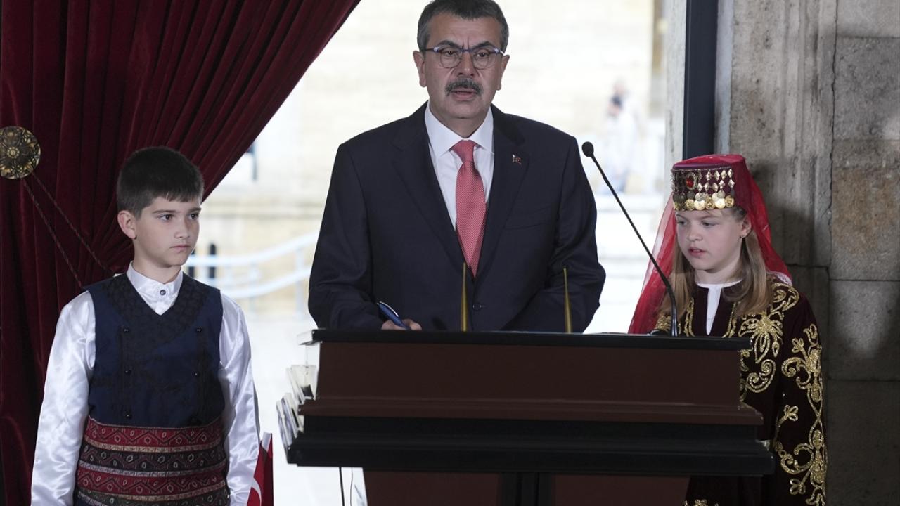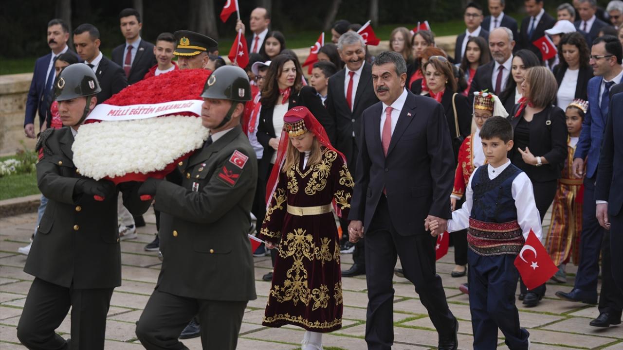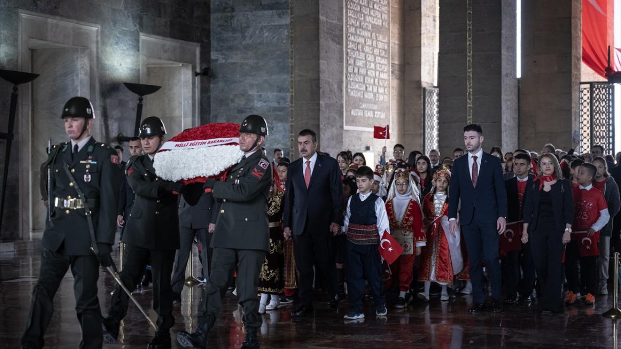"Aziz Atatürk, ebedi istirahatgahınız Anıtkabir`de huzurlarınızda, Türkiye Büyük Millet Meclisi`nin 104. kuruluş yıl dönümü ve istiklalimiz için verdiğiniz büyük mücadelenin nişanesi olan 23 Nisan Ulusal Egemenlik ve Çocuk Bayramı`nı büyük bir coşku ve şükranla kutlamanın onurunu yaşıyoruz. `Hâkimiyet, bila kaydü şart milletindir.` ilkesiyle şekillenen bağımsızlık mücadelemizin yarını, evlatlarımızın omuzlarında yükselmektedir. Milli Eğitim Bakanlığı olarak bu şanlı mirası, bilimle, kültürle, sanatla ve en önemlisi manevi değerlerle bezenmiş bir şekilde evlatlarımıza aktarmak bizim için şeref borcudur. Çünkü biliyoruz ki `dehay-i millimizin inkişaf-ı ancak böyle bir kültür ile temin olunabilir.` Sizden aldığımız ilham ve aziz milletimizden aldığımız kuvvetle, bu cennet vatanı daha da ileriye taşıma kararlılığındayız. Ruhunuz şad olsun."
