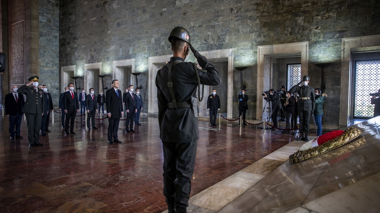 Bakan Selçuk`un, çelengi mozoleye bırakmasının ardından saygı duruşunda bulunuldu ardından İstiklal Marşı okundu.