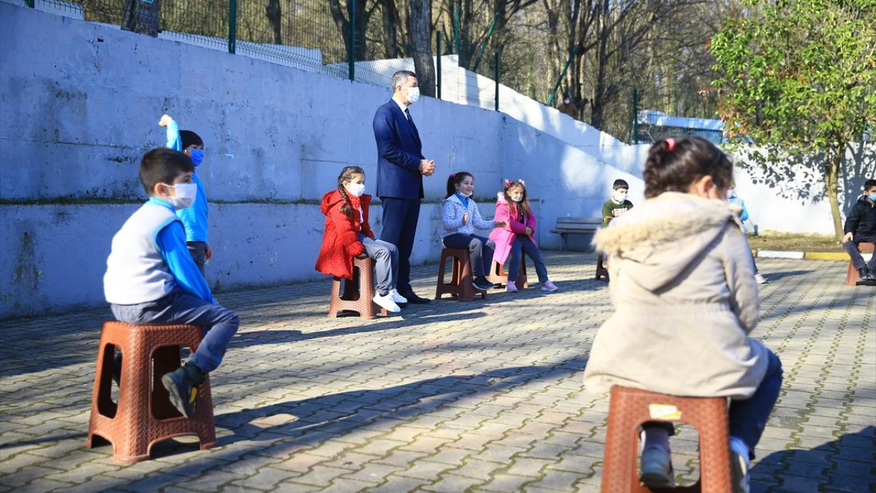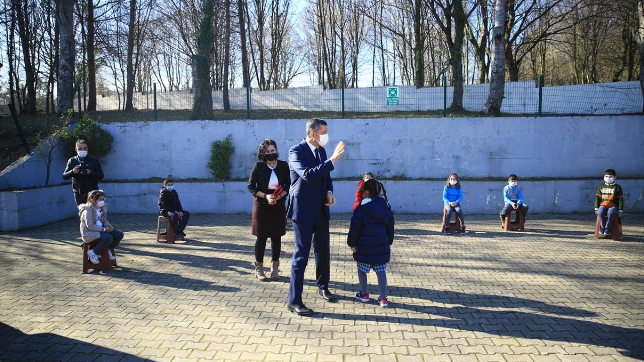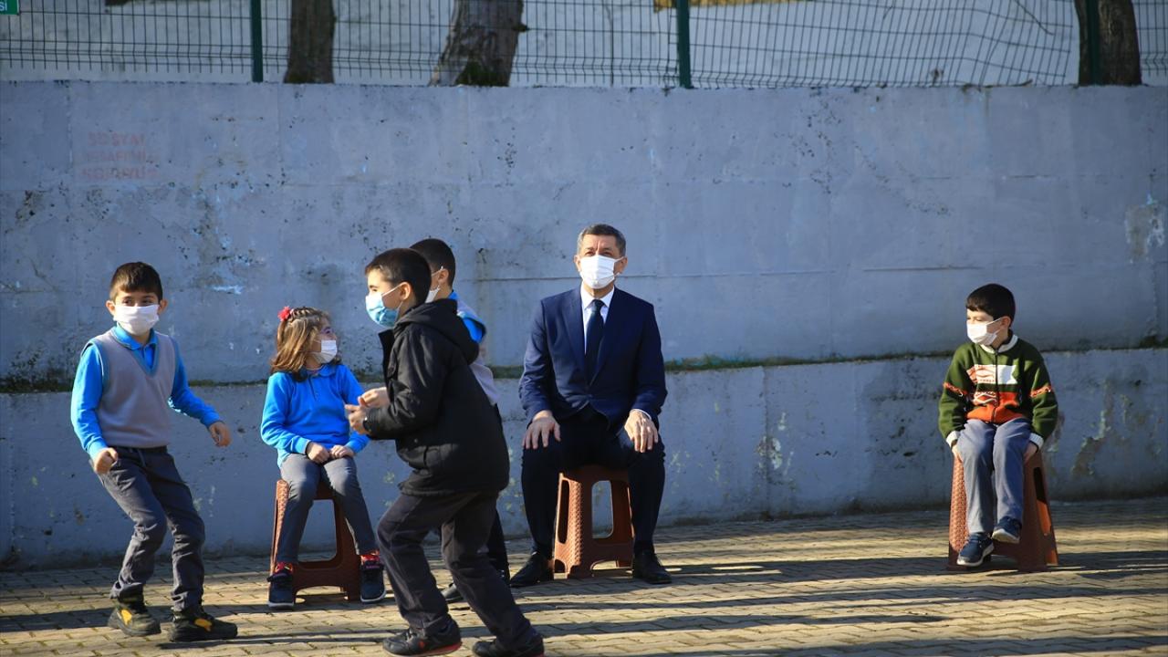 Bakan Selçuk, konuşmasının ardından bahçede "temassız oyun" oynayan çocukları bir süre izledikten sonra okuldan ayrıldı.