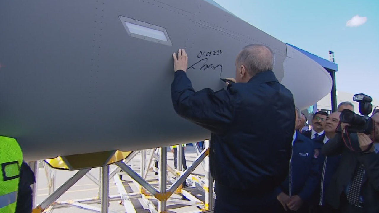 Cumhurbaşkanı Erdoğan, Milli Muharip Uçak'ın (MMU) adını "KAAN" olarak açıkladı. 'KAAN'ın ismini Devlet Bahçeli'nin koyduğunu ifade eden Erdoğan, "Suyun öte tarafındakileri rahatsız etmeye KAAN ve Hürjet yeter" dedi. Erdoğan, Milli Muharip Uçak KAAN'ın gövdesine 1 Mayıs 2023 tarihini atıp imzaladı.