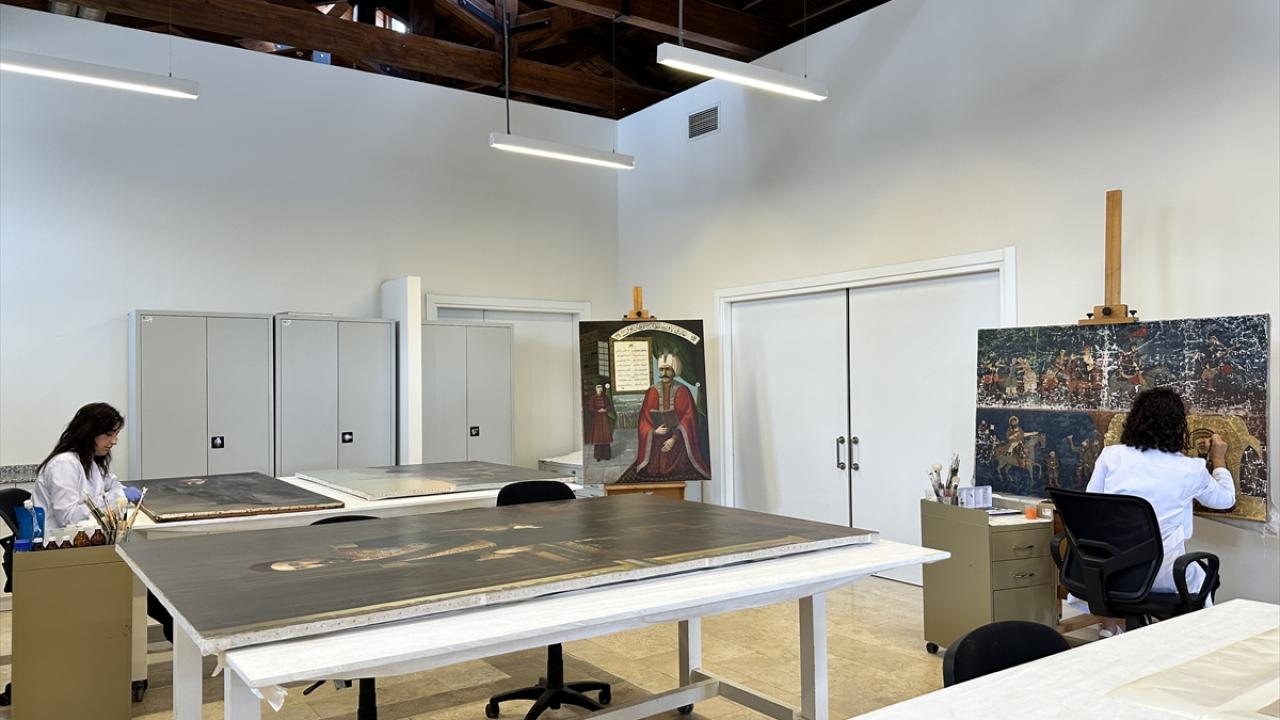 Atölyede, 19. yüzyıla ait, birbirinden farklı tarz ve ebatta 5 tablo üzerinde çalışılıyor. Tablolar restore edilirken bir yandan da eserlerin kime veya hangi ekole ait olduğuna dair araştırmalar devam ediyor.
