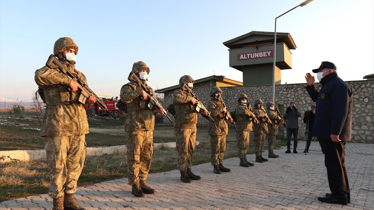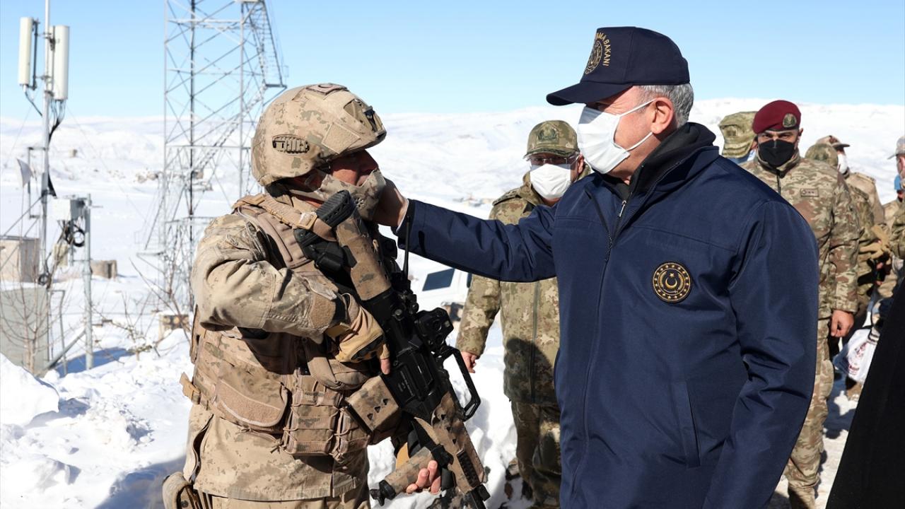 Milli Savunma Bakanı Akar, beraberinde TSK Komuta Kademesi ile Suriye ve Irak sınırının kesiştiği sıfır noktasındaki Altunbey 1. Hudut Takım Komutanlığında incelemede bulundu.