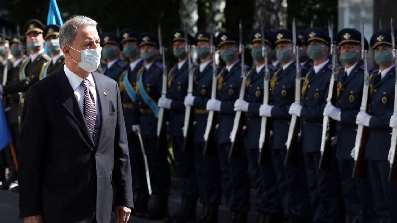 Bandonun iki ülke ulusal marşlarını çalmasıyla başlayan törende Akar, tören birliğini selamladı.